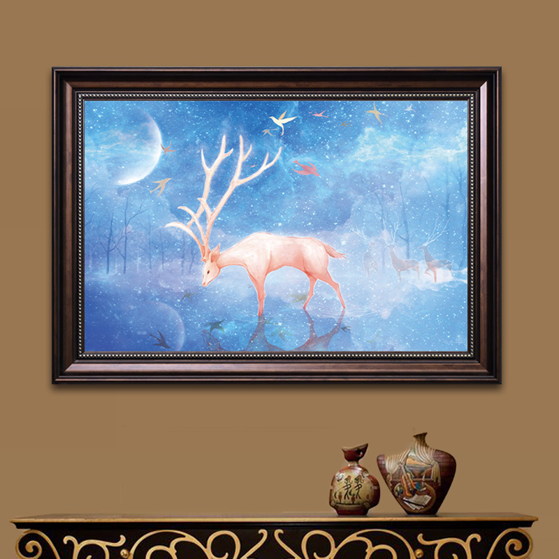 北歐鉆石畫臥室客廳滿鉆石繡夢幻麋鹿貼鉆十字繡餐廳玄關5d磚石畫1入