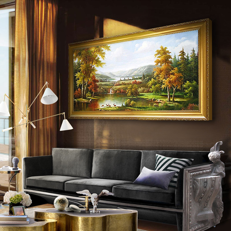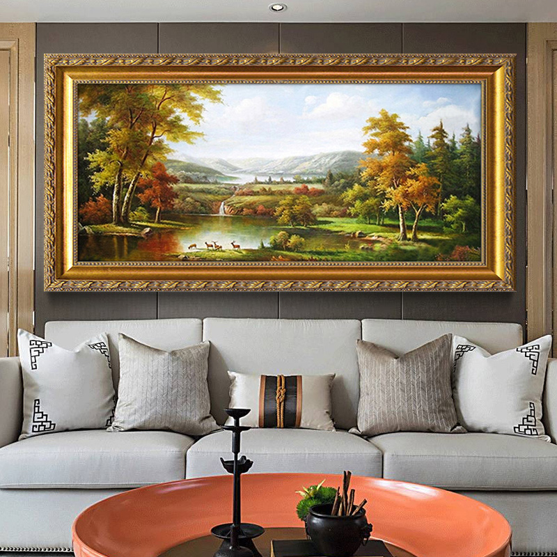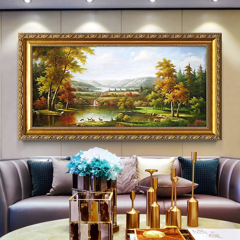 新款點鉆十字繡鉆石繡客廳歐式聚寶盆麋鹿山水風景鉆石畫風水掛畫1入