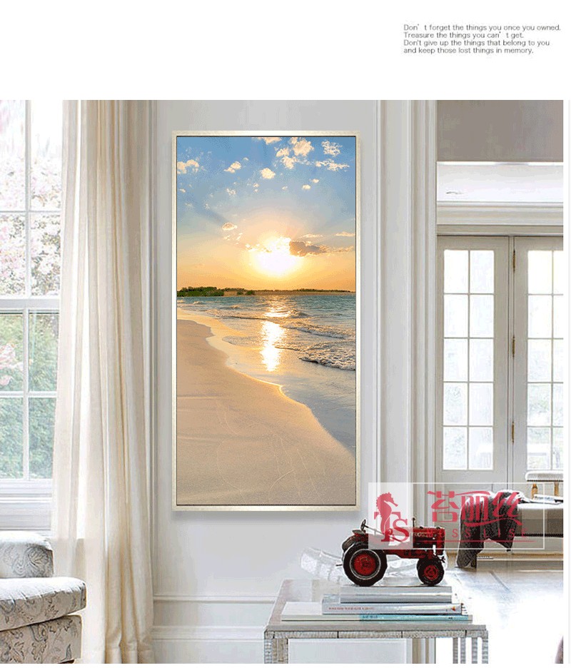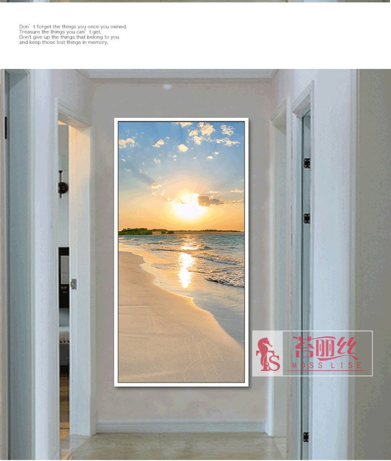 鉆石畫滿鉆新款簡約現代海邊沙灘日出粘鉆十字繡玄關豎版鉆石秀5d1入