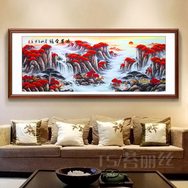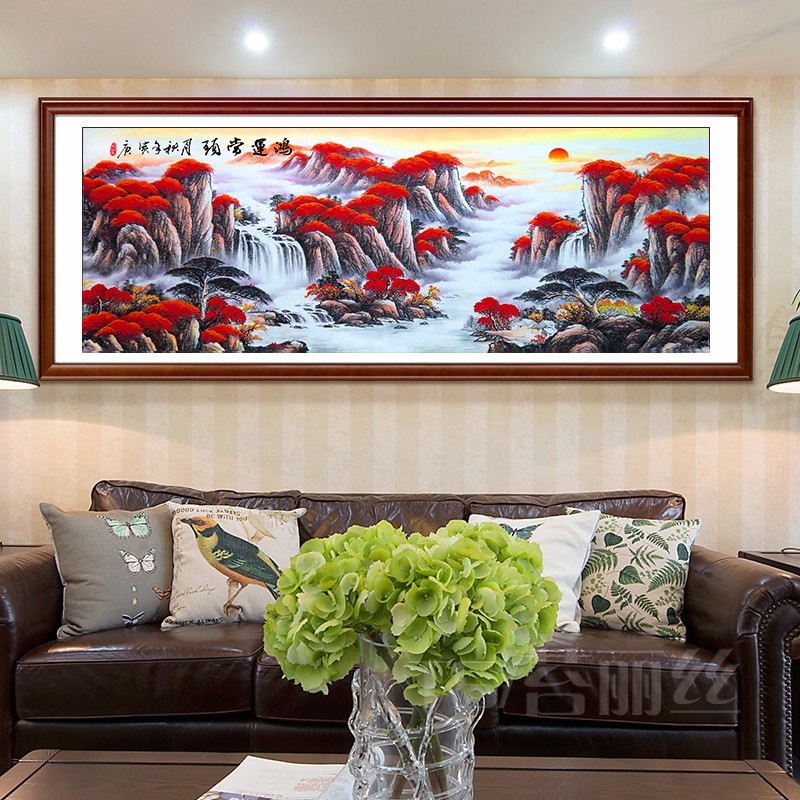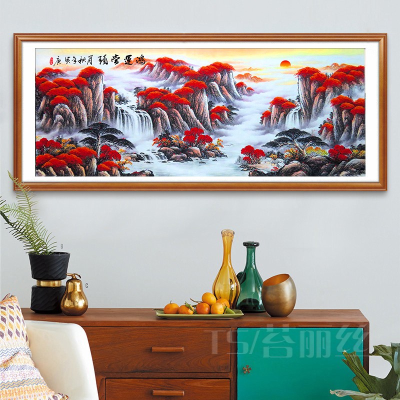 十字繡鴻運當頭客廳大幅線繡3D精準印花滿繡新款線繡3米風景全繡1入