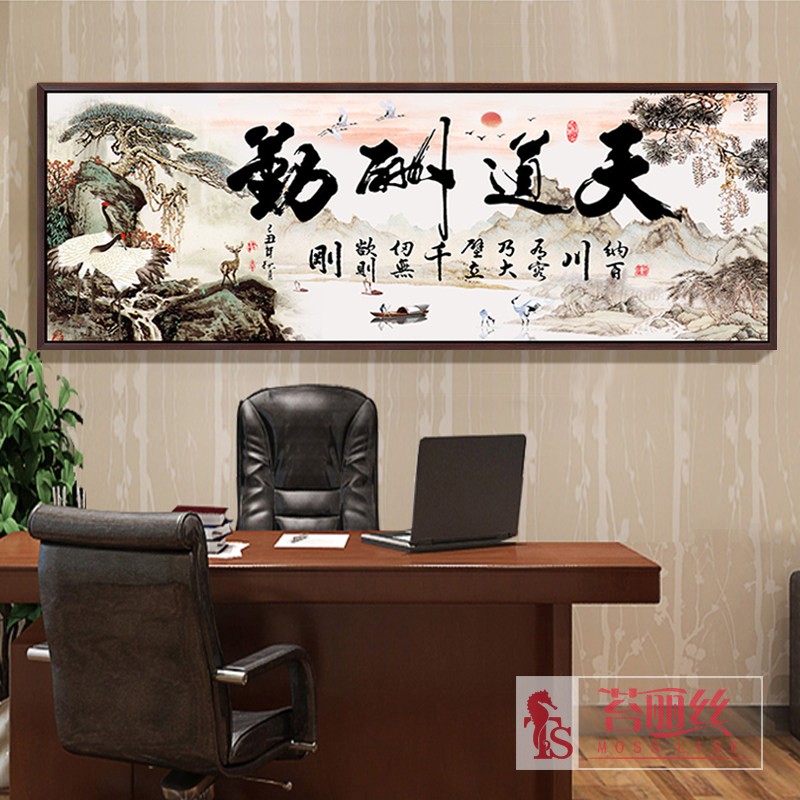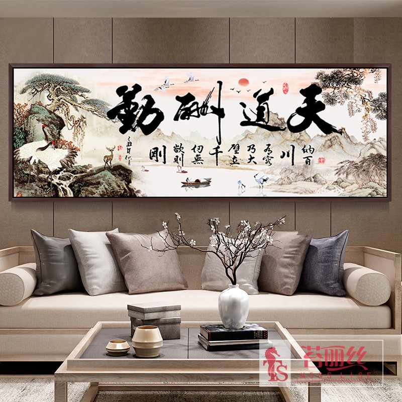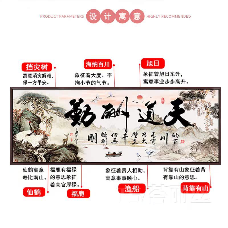 天道酬勤鉆石畫滿鉆新款5d客廳大幅山水風景點鉆十字繡磚石畫字畫1入