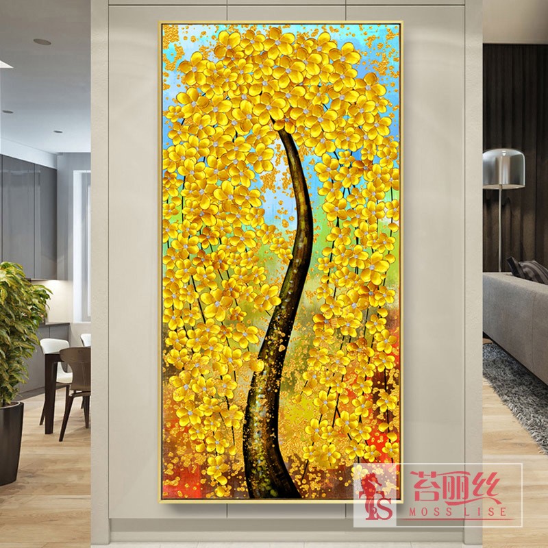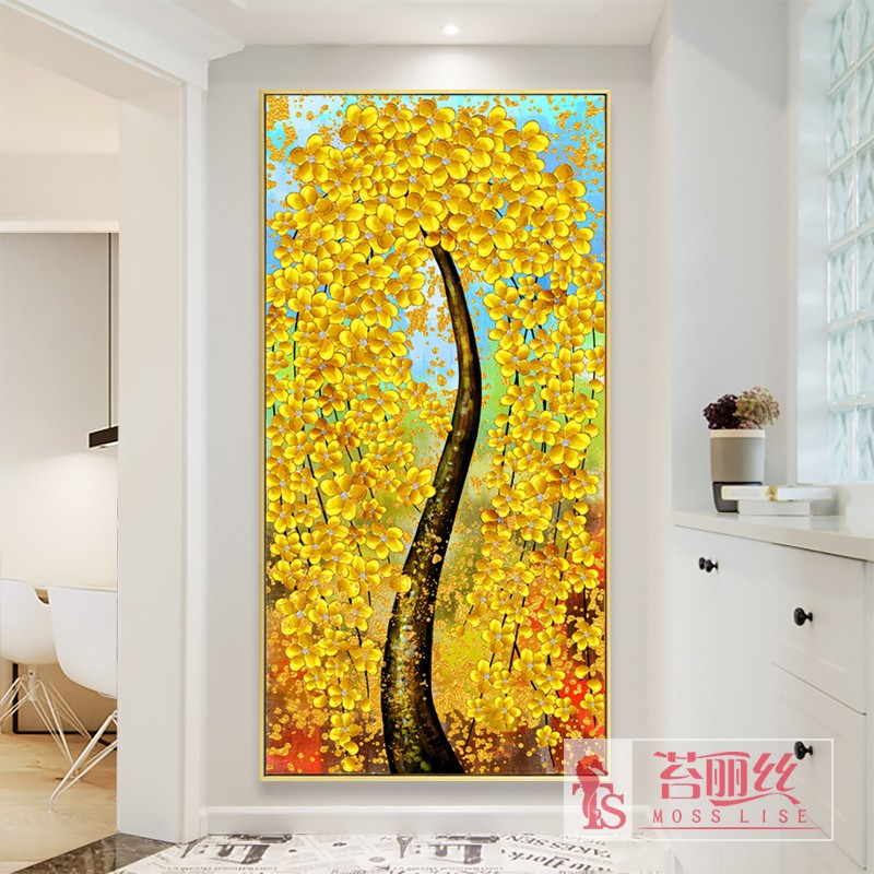 2019新款現代簡約客廳發財樹鉆石畫滿鉆5d豎版玄關點鉆十字繡1入