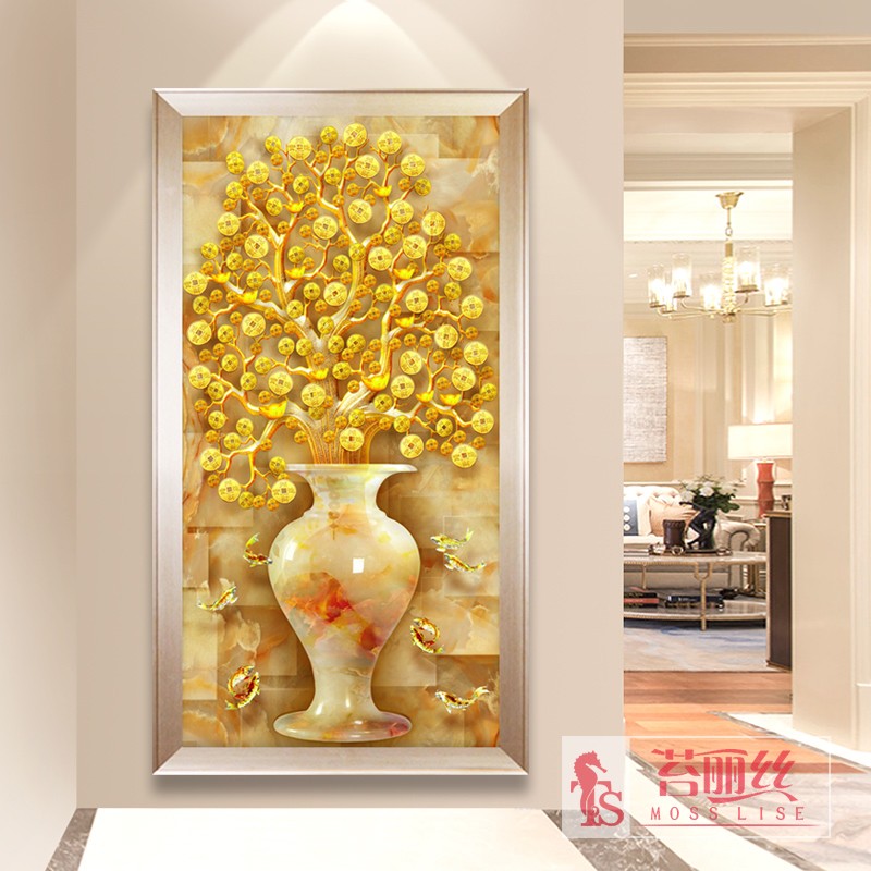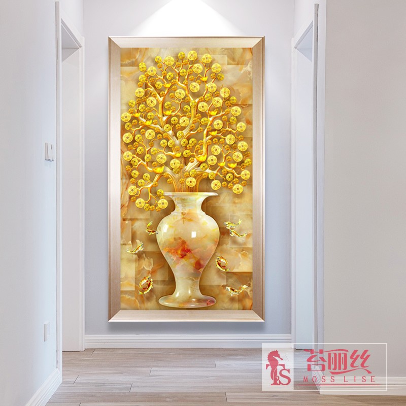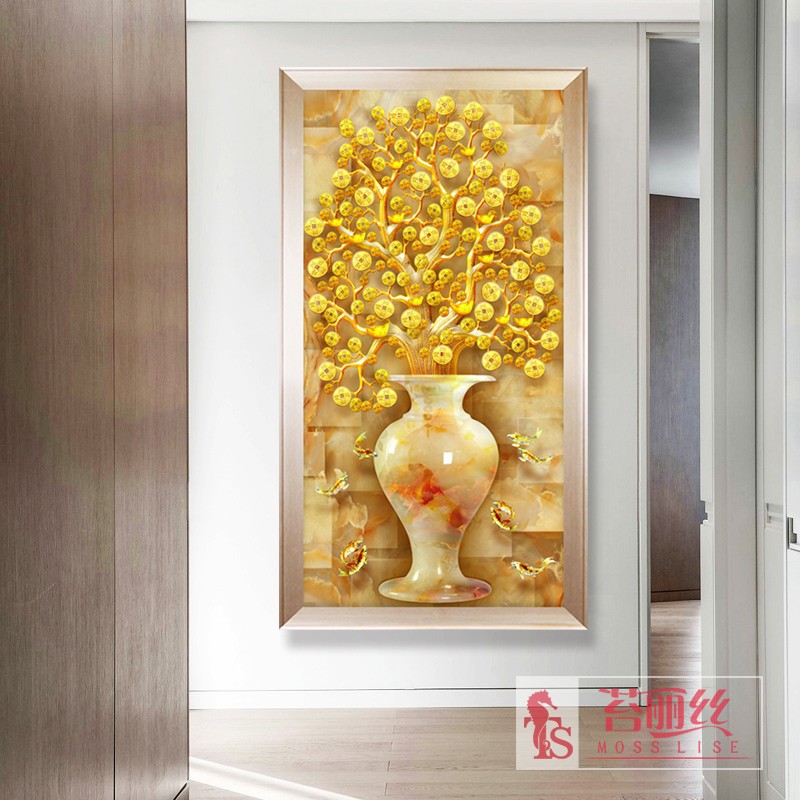 新款5d鉆石畫滿鉆客廳搖錢樹粘鉆十字繡富貴平安玄關豎版簡約鉆繡1入