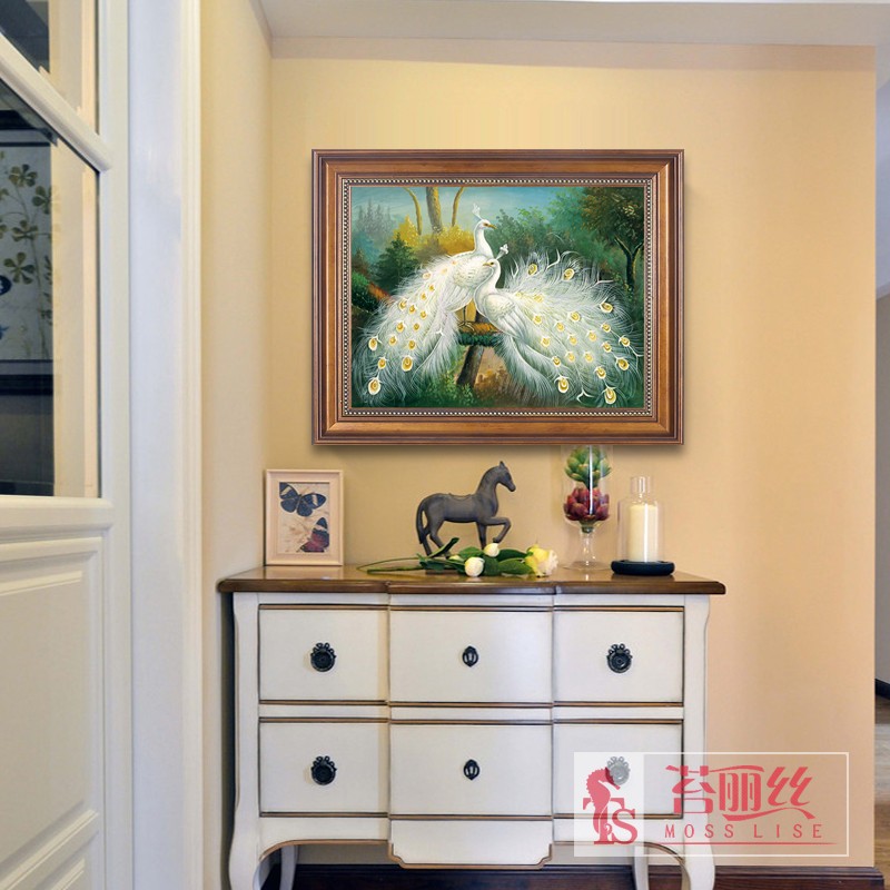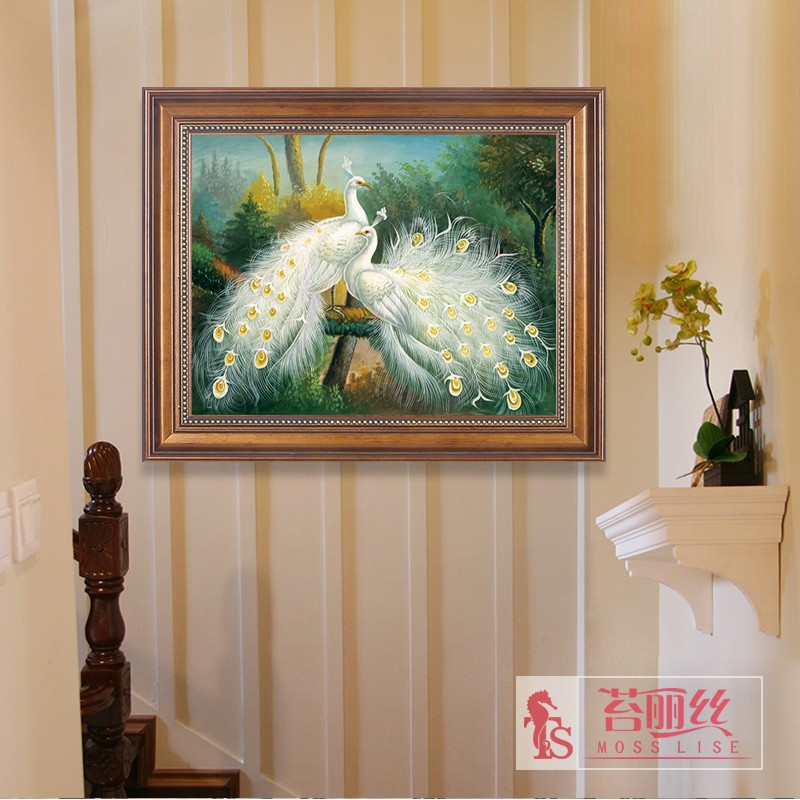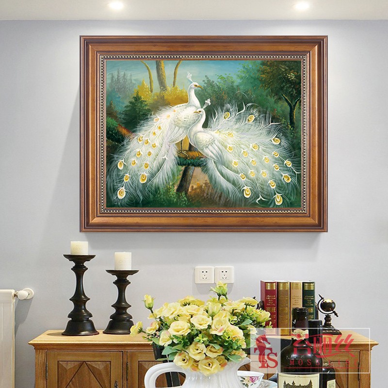 鉆石畫新款餐廳滿鉆白孔雀情侶點鉆十字繡磚石畫圓鉆玄關5d鉆石繡1入