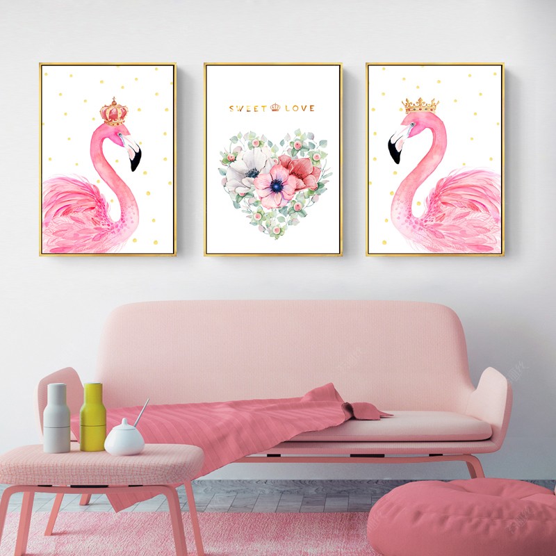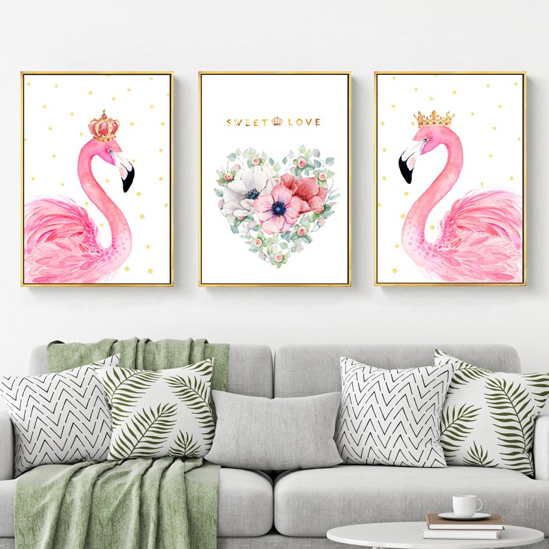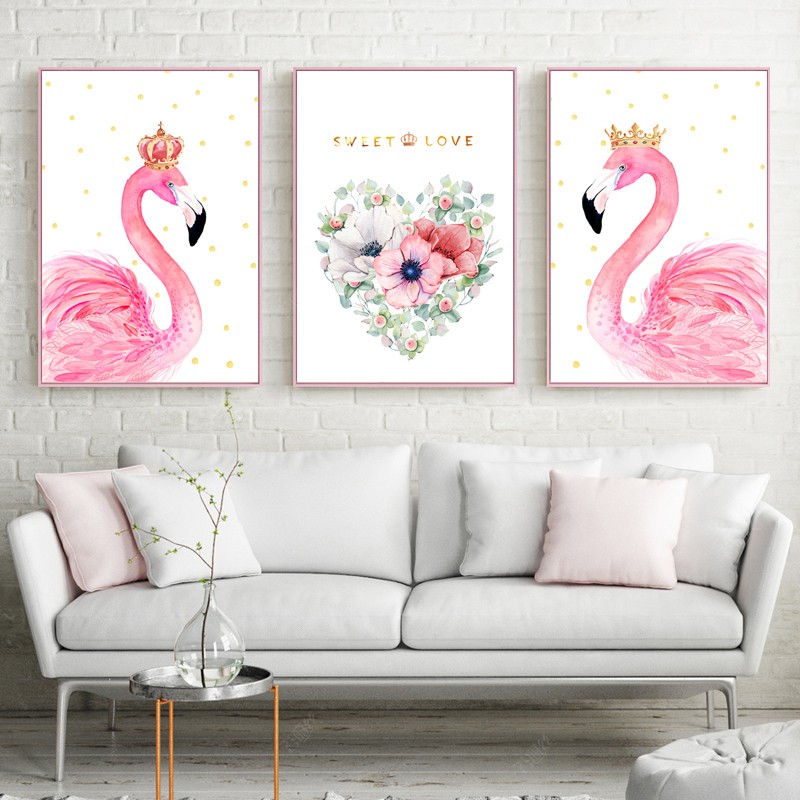 簡約現代臥室清新火烈鳥貼鉆十字繡新款鉆石畫滿鉆石繡三連畫客廳1入