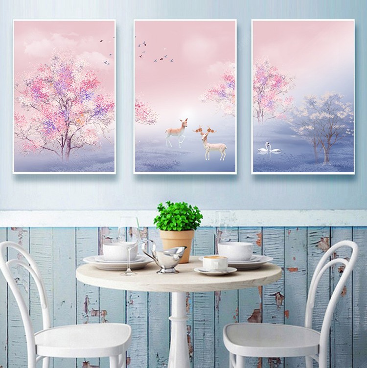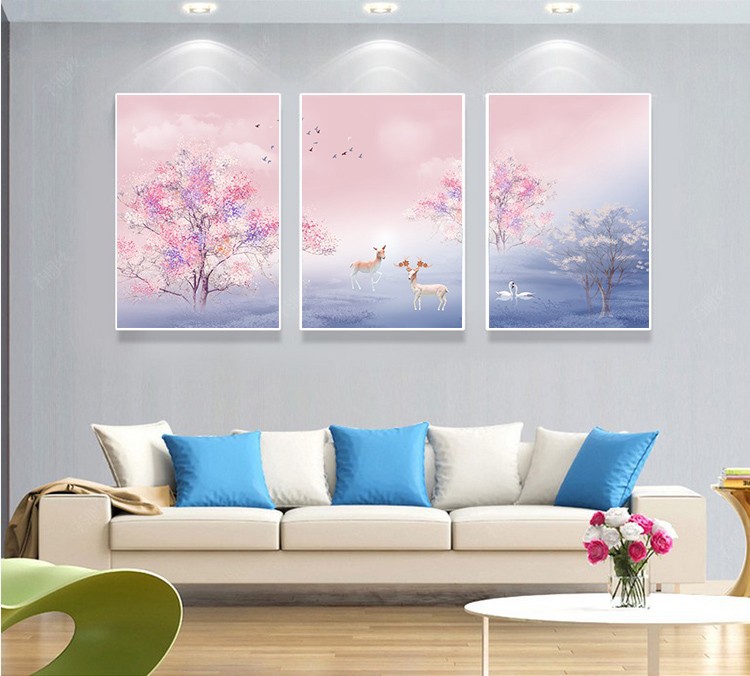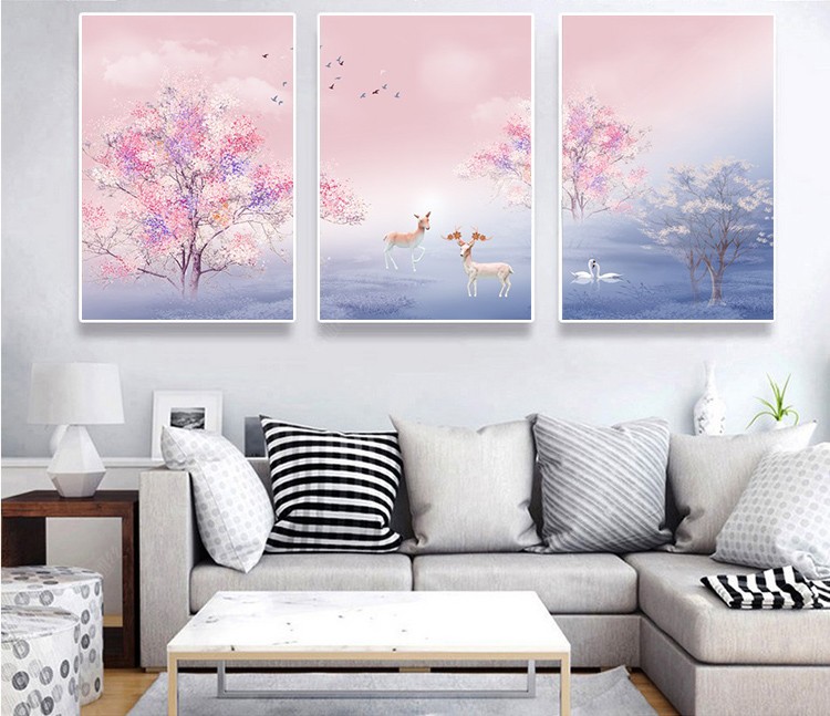 2018新款鉆石繡櫻花樹鉆石畫三聯滿鉆客廳簡約現代十字繡幸福麋鹿1入