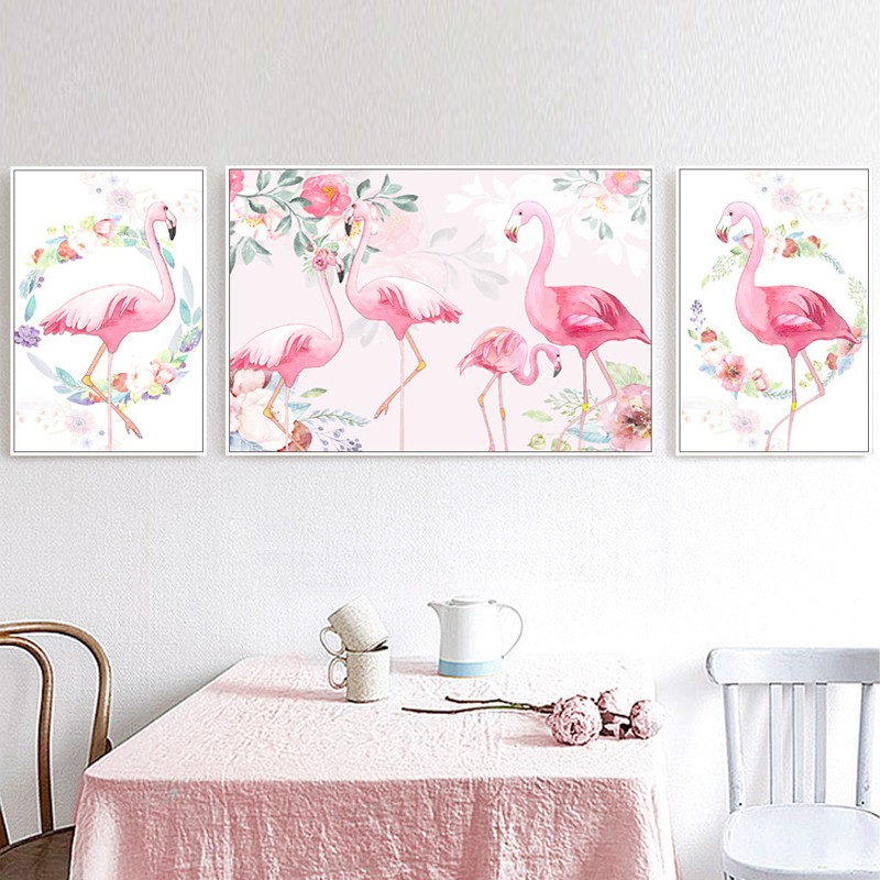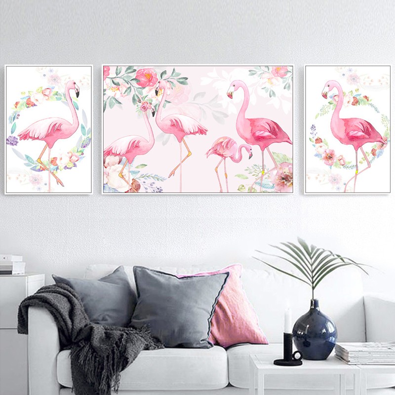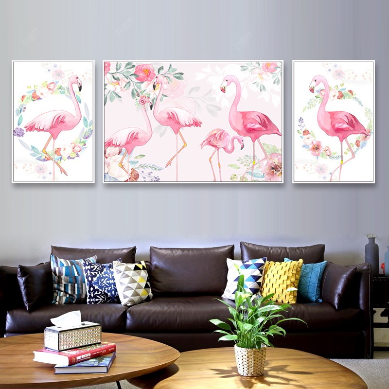 北歐客廳火烈鳥鉆石畫滿鉆簡約現代溫馨三連粘鉆十字繡鉆石秀圓鉆1入
