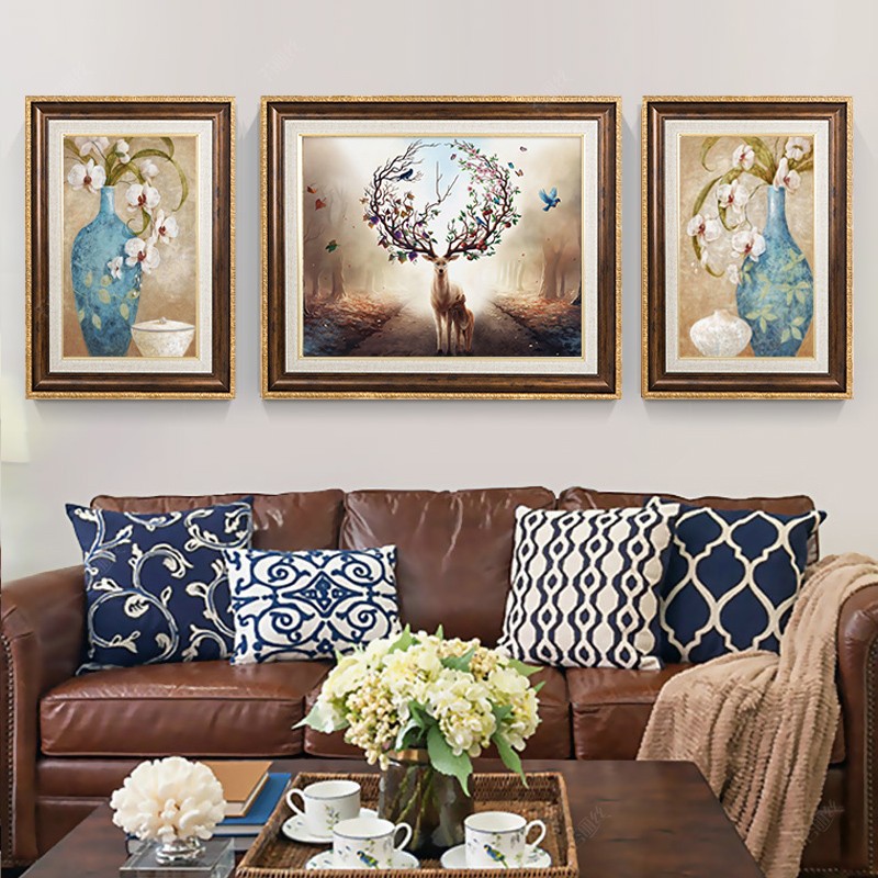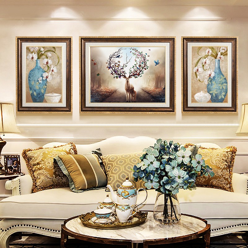 歐式鉆石繡三連畫客廳滿鉆石畫富貴平安蘭花麋鹿貼鉆十字繡磚石秀1入