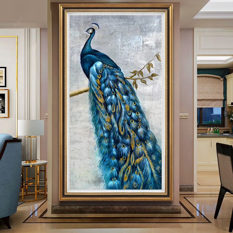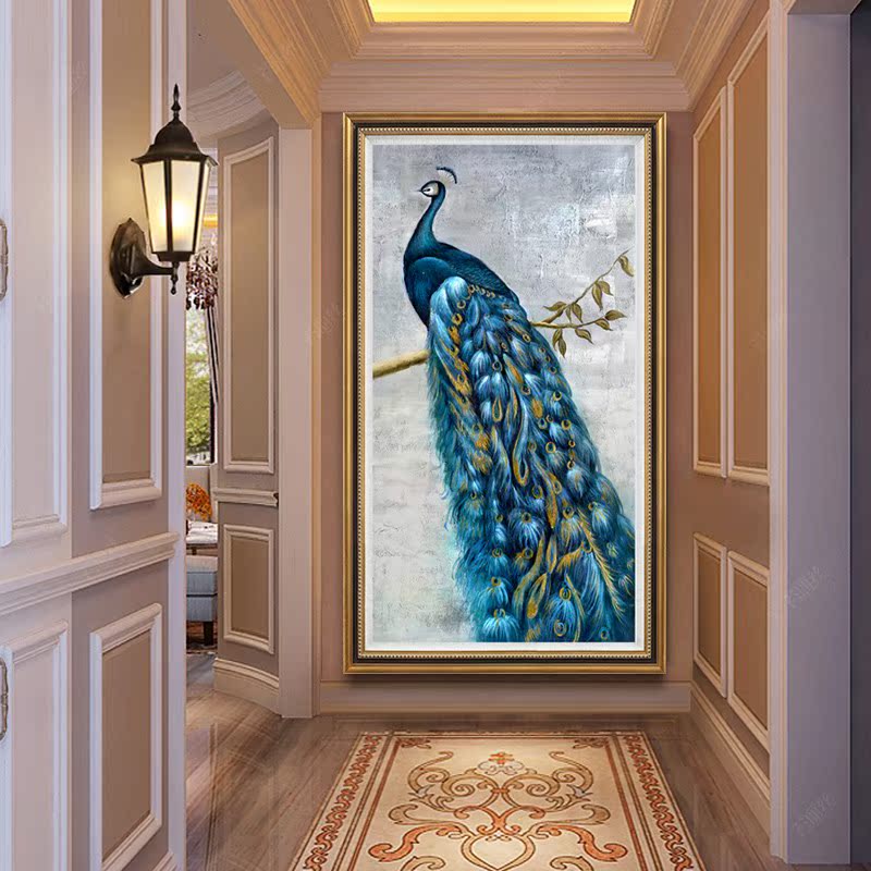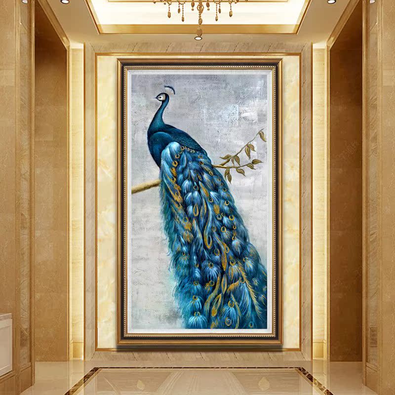 孔雀鉆石繡滿鉆新2018點鉆十字繡客廳豎版畫圓鉆磚石繡貼5d鉆石畫1入