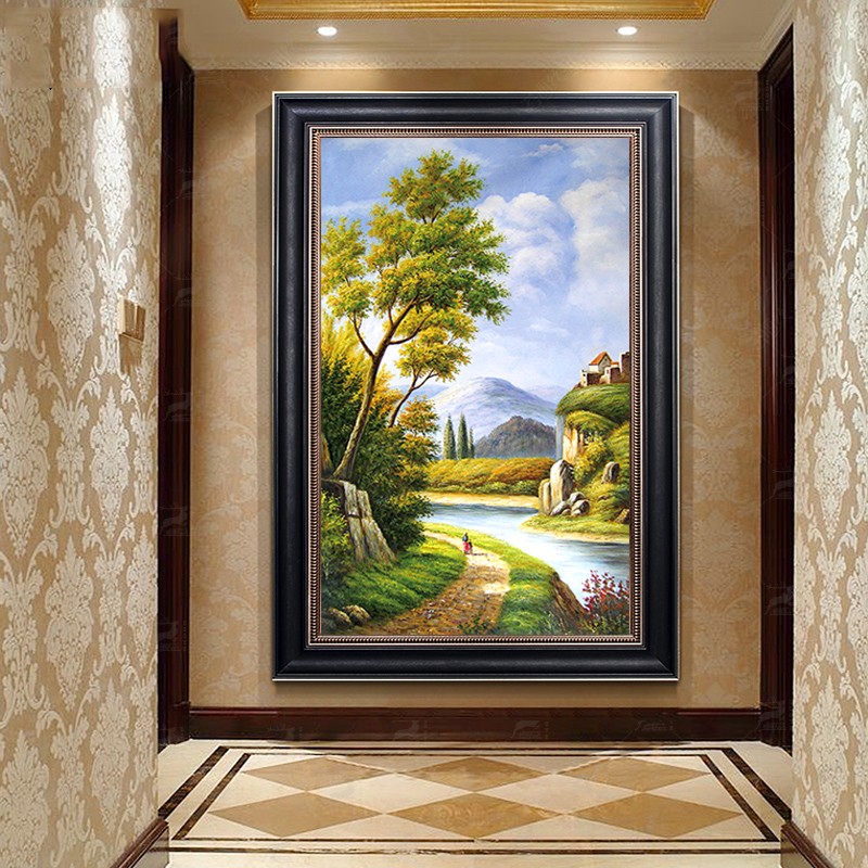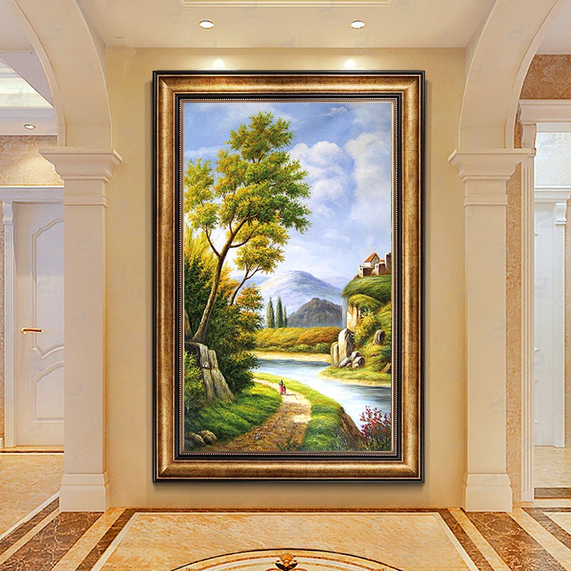 新款歐式玄關鉆石畫豎版滿鉆山水風景客廳背景墻鉆石繡十字繡過道1入