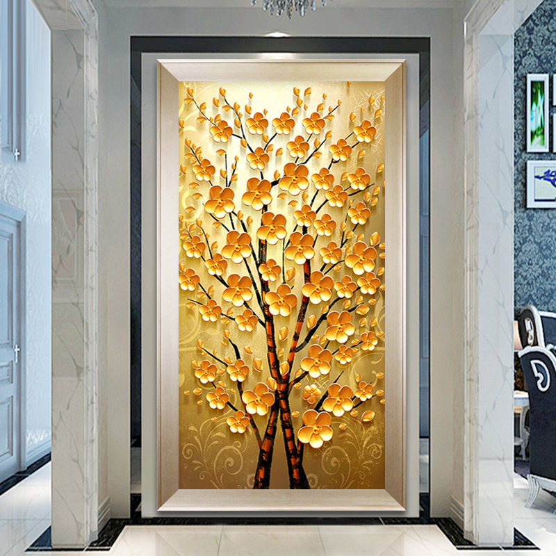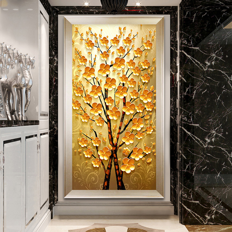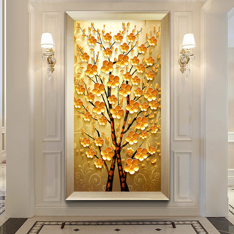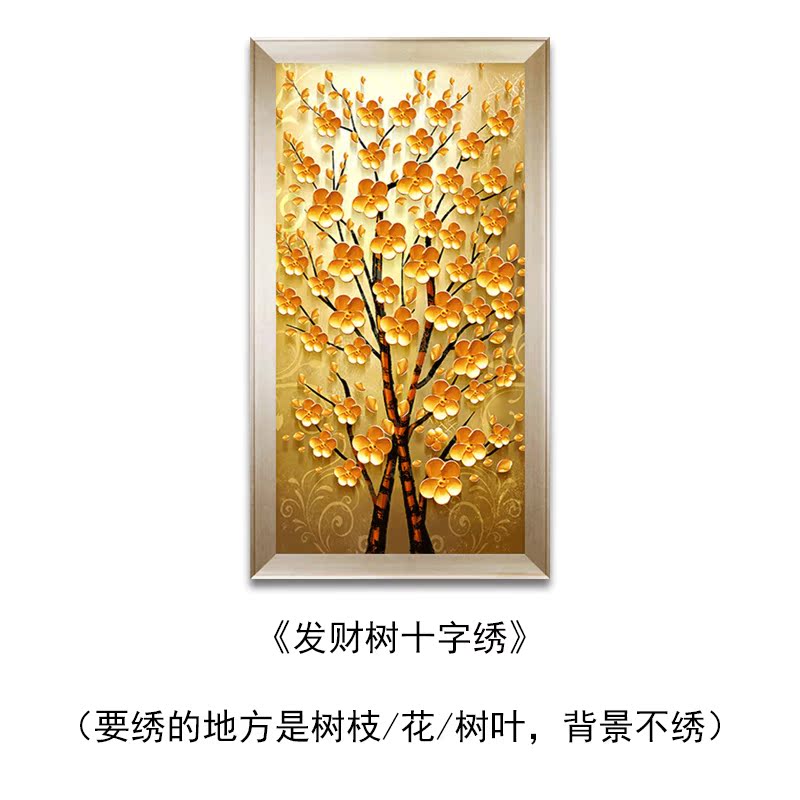 2019新款十字繡線繡客廳玄關簡約現代發財樹3d印花簡單繡新版1入