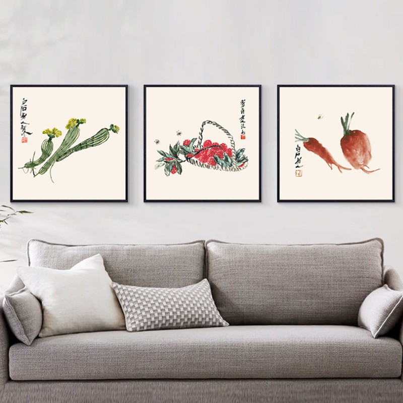 鉆石畫滿鉆齊白石清香絲瓜中式餐廳貼鉆十字繡國畫禪意三連鉆石繡1入