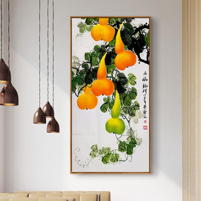 新款五福臨門鉆石畫玄關豎版滿鉆客廳中國風點鉆十字繡滿鉆磚石畫1入