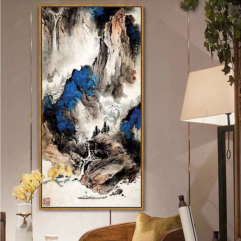 張大千新中式客廳玄關鉆石畫滿鉆鑲鉆十字繡點鉆畫中國風山水貼鉆1入