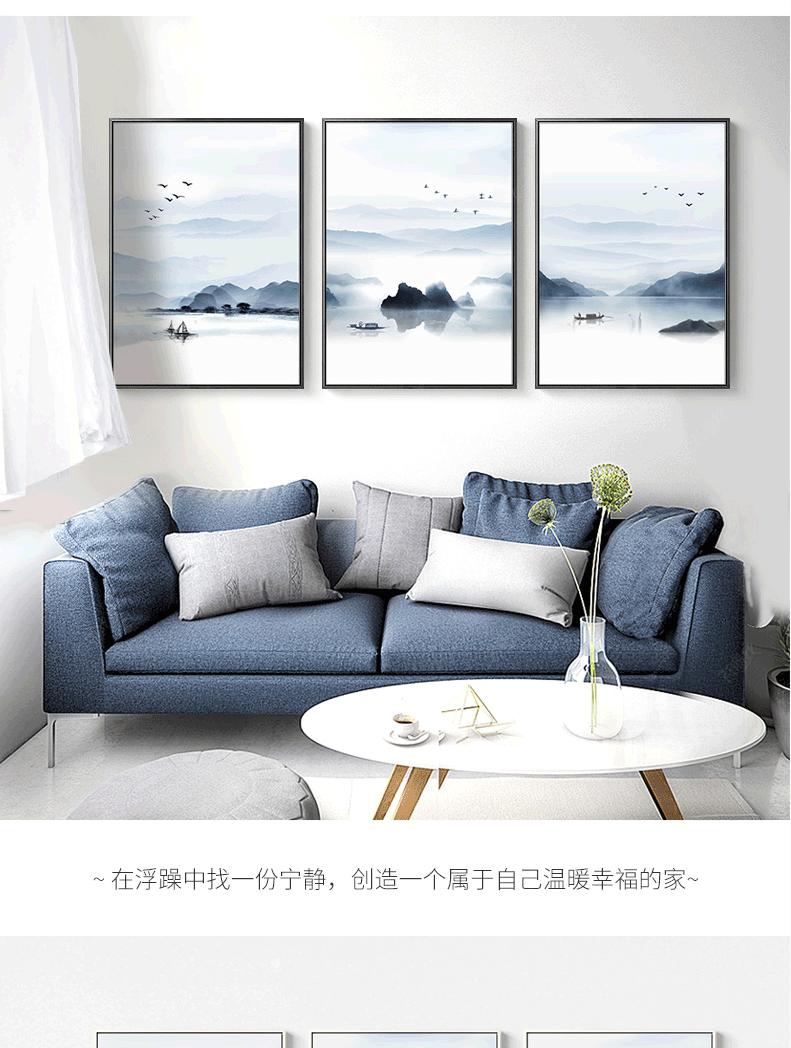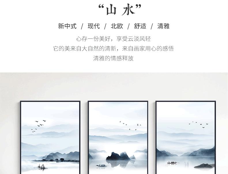 鉆石畫滿鉆現代辦公室墻畫貼鉆繡中國風三聯畫山水風景鉆石繡滿鉆1入