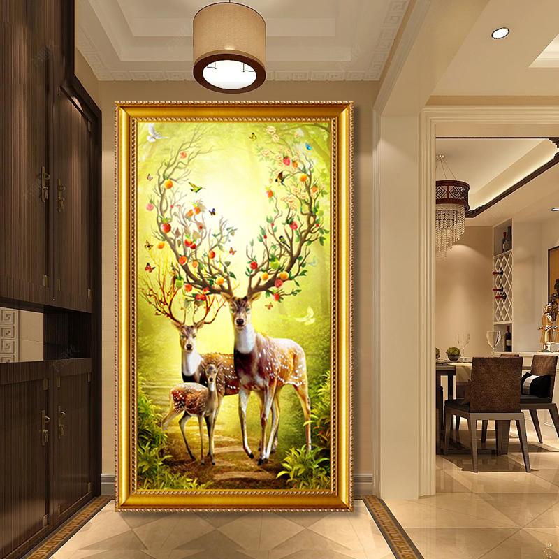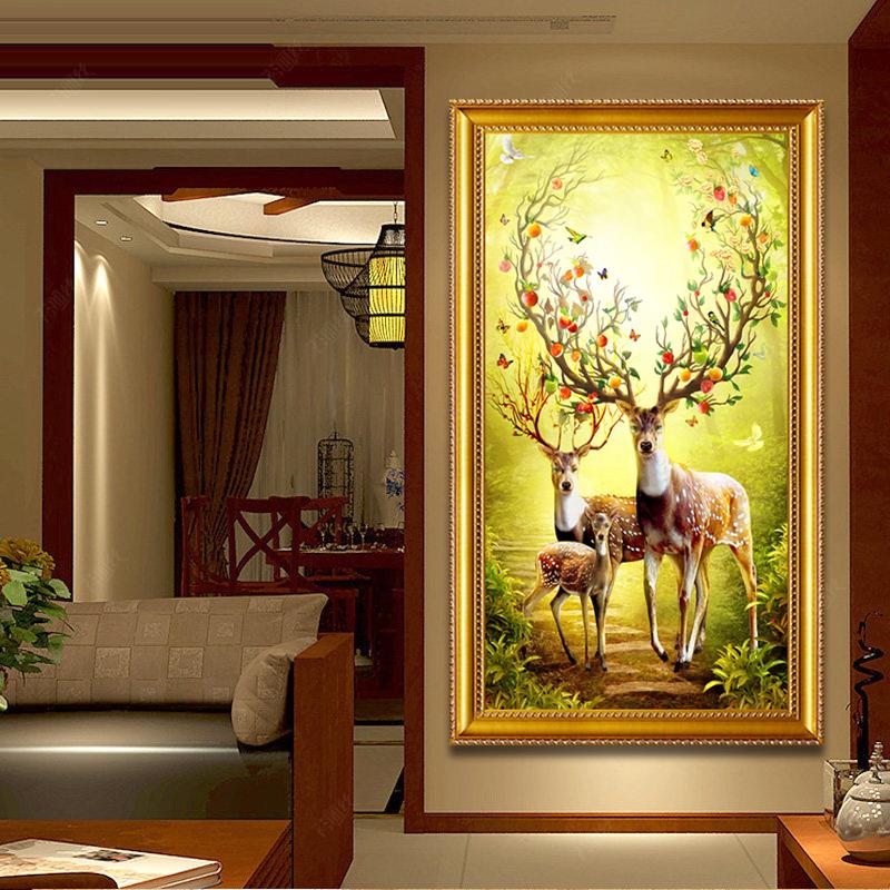 新款客廳玄關鉆石畫十字繡幸福麋鹿豐收鉆繡豎版滿鉆走廊過道掛畫1入