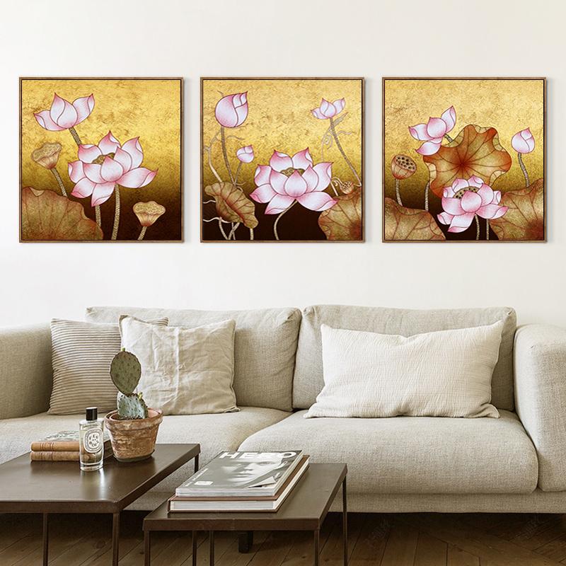 新中式鉆石畫荷花三連鉆石繡客廳家和萬事興貼鉆繡滿鉆和氣生財畫1入