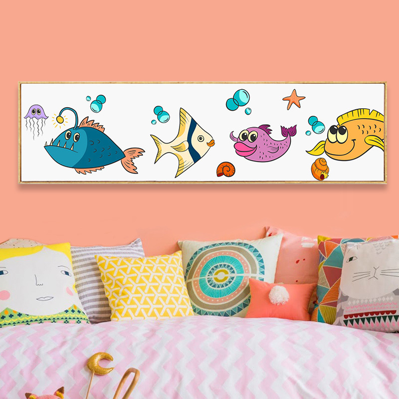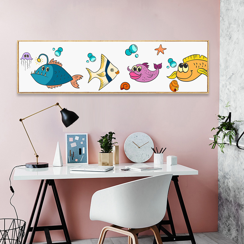 鉆石畫卡通海底世界動漫鯨魚海螺DIY鉆石繡兒童房掛畫點鉆十字繡1入