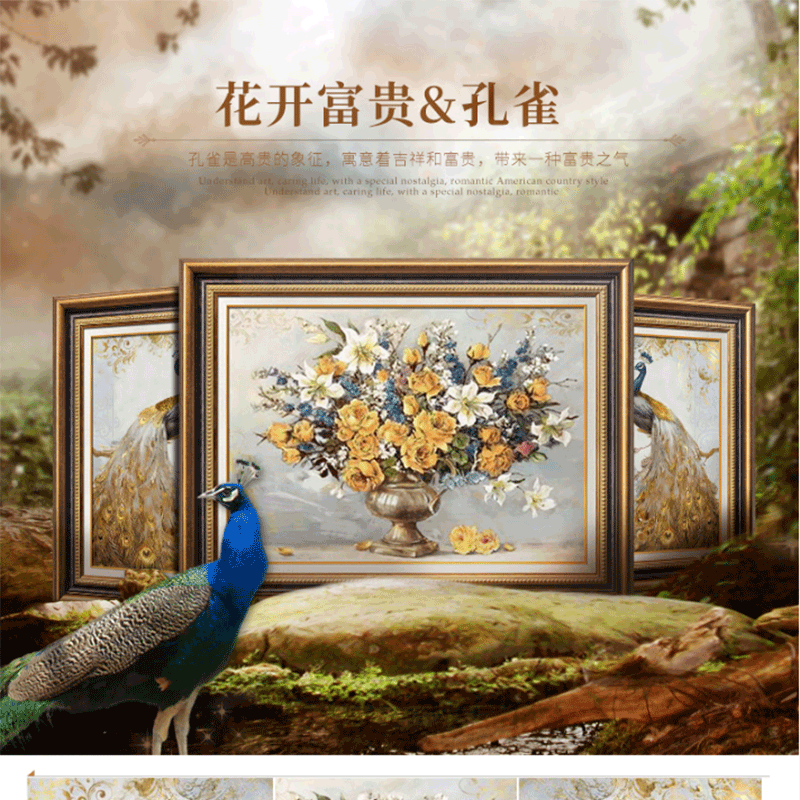 歐式鉆石畫客廳滿鉆2017新款貼鉆十字繡孔雀花開富貴磚石繡點鉆畫1入