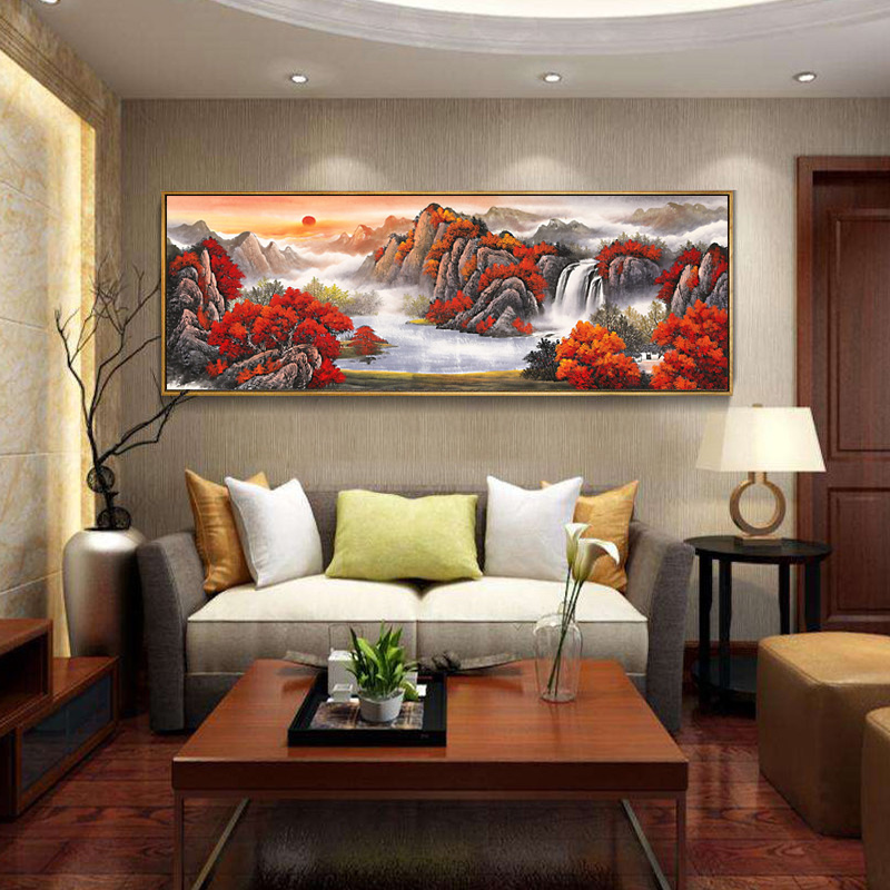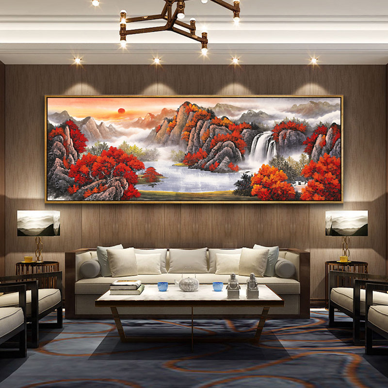 新款滿山紅遍國畫山水貼鉆十字繡滿鉆客廳鴻運當頭鉆石繡辦公室畫1入