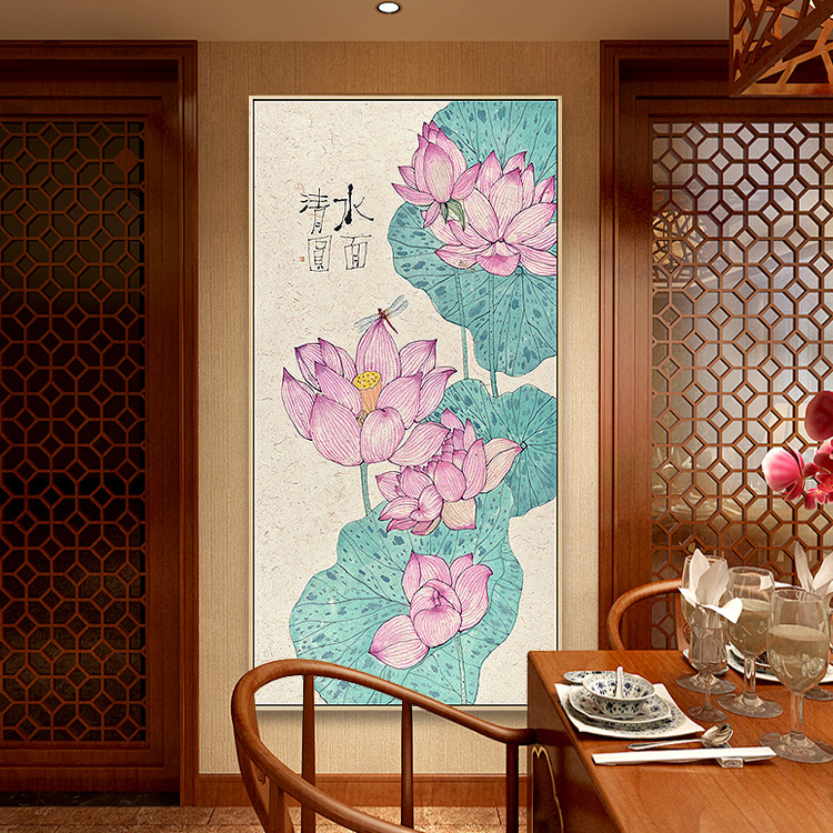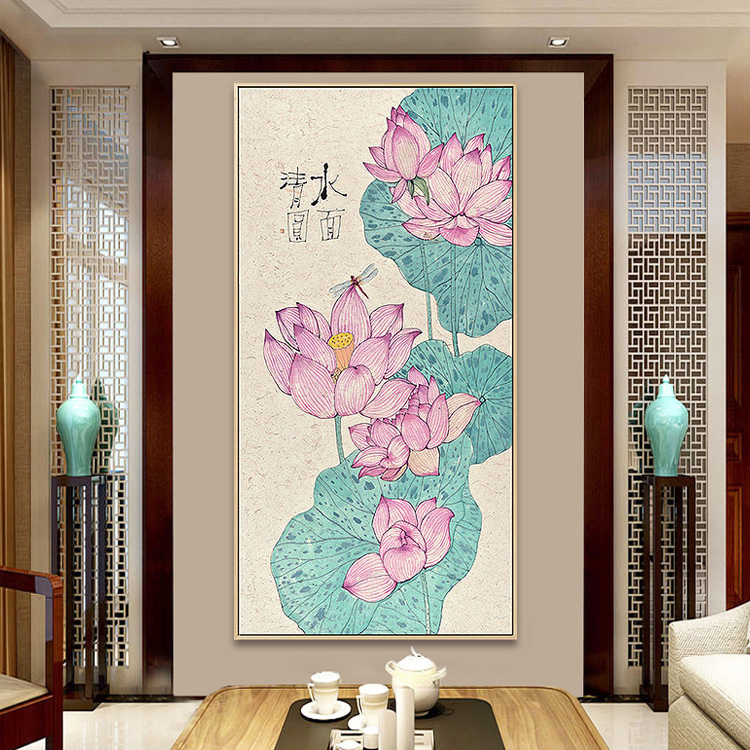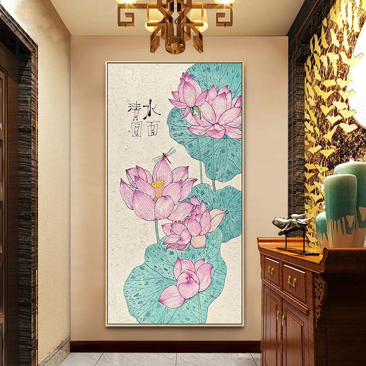 新中式荷花鉆石繡優雅清新十字繡5d鉆石畫玄關豎版客廳滿鉆磚石畫1入