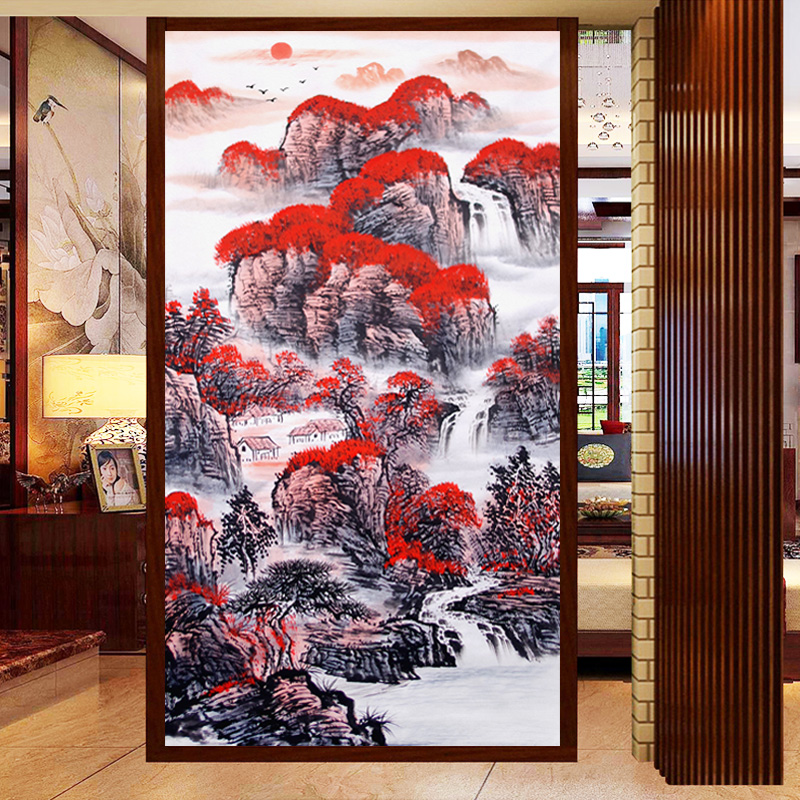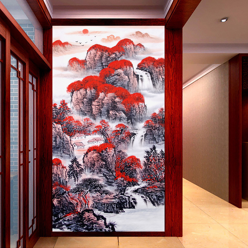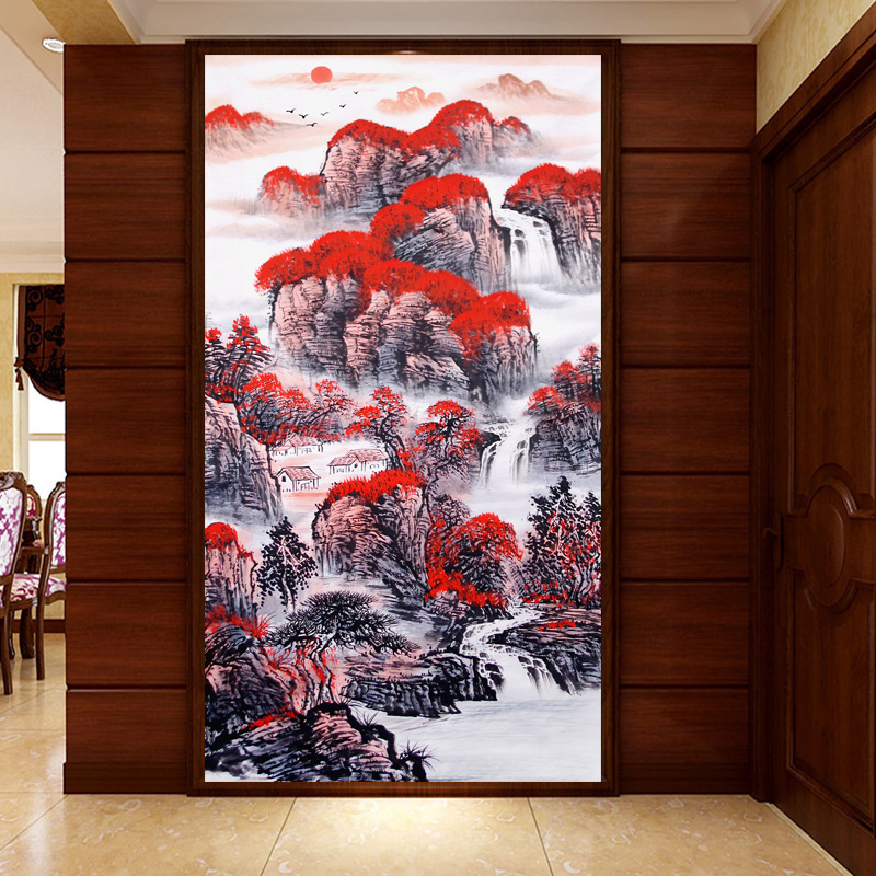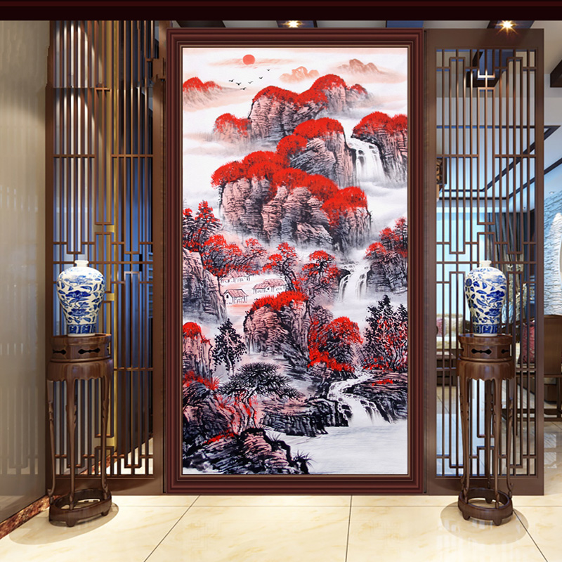 新中式貼鉆繡山水畫點鉆十字繡鉆石繡客廳鴻運當頭鉆石畫玄關豎版1入
