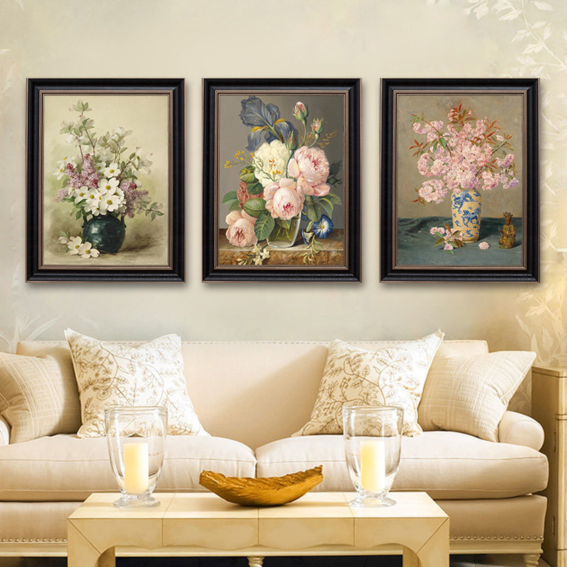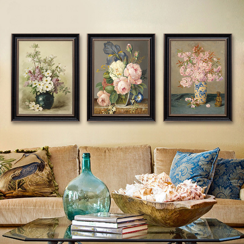 十字繡鉆石畫花卉客廳新款歐式復古花瓶插花鉆石繡餐廳嬌艷欲滴畫1入