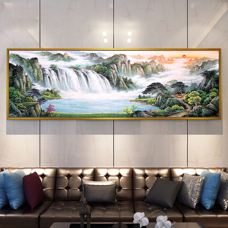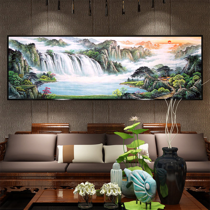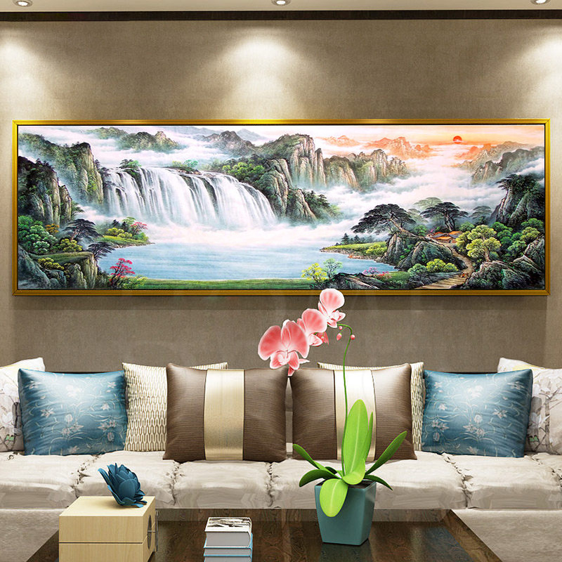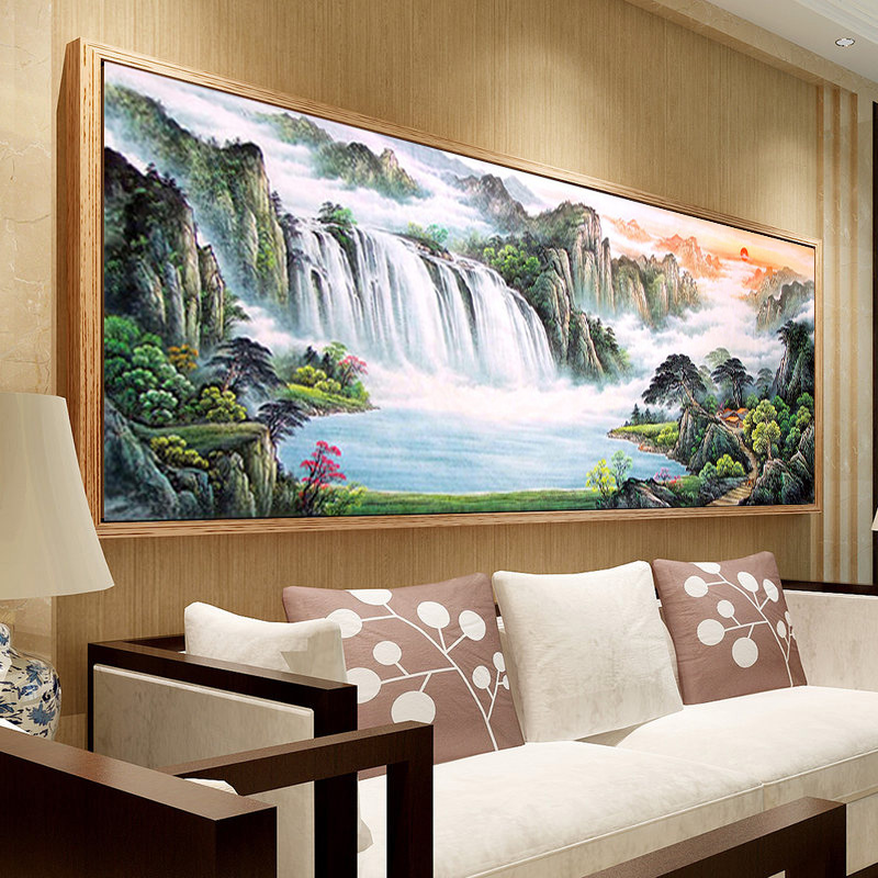 5d鉆石畫滿鉆客廳流水生財3米貼鉆十字繡風景旭日東升山水鉆石繡1入