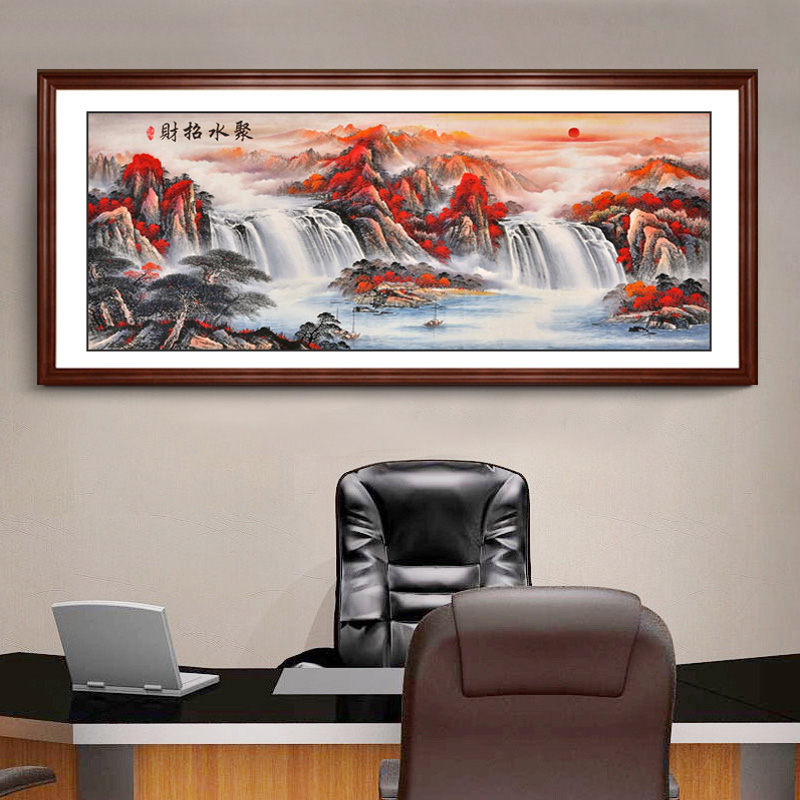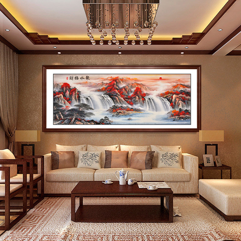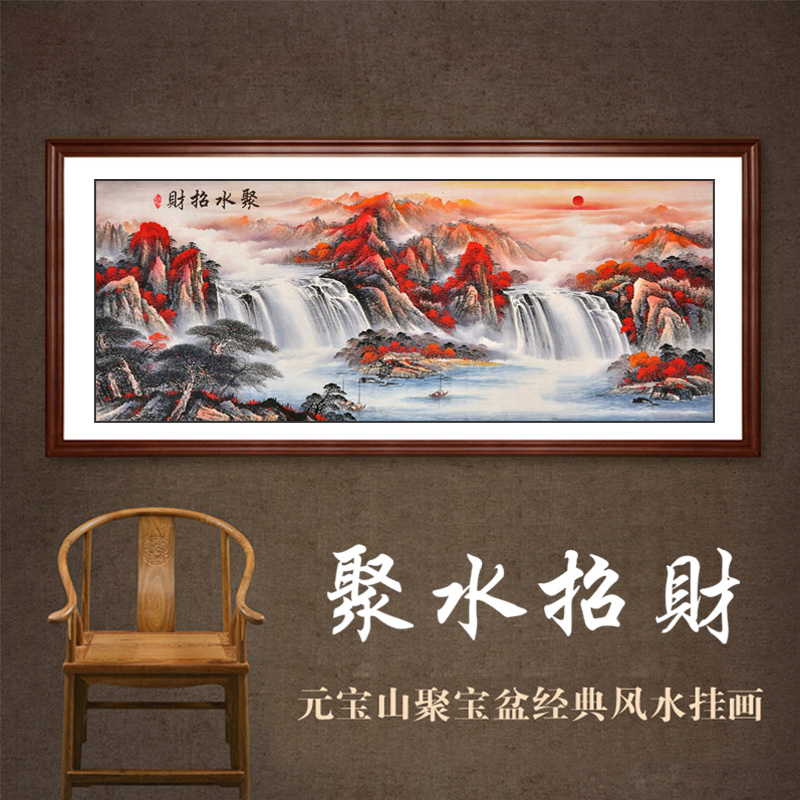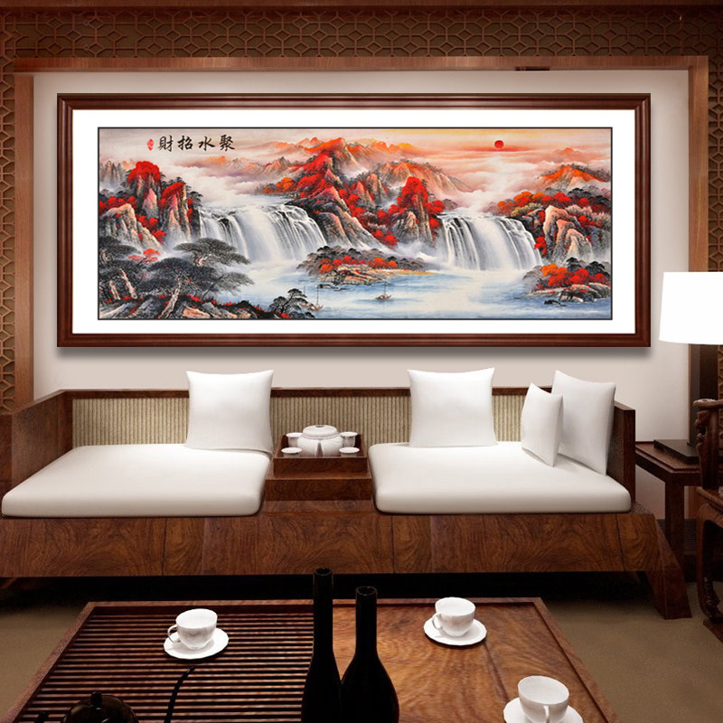 新款滿鉆石畫客廳風景聚寶盆鉆石繡聚水招財貼鉆十字繡鴻運當頭畫1入