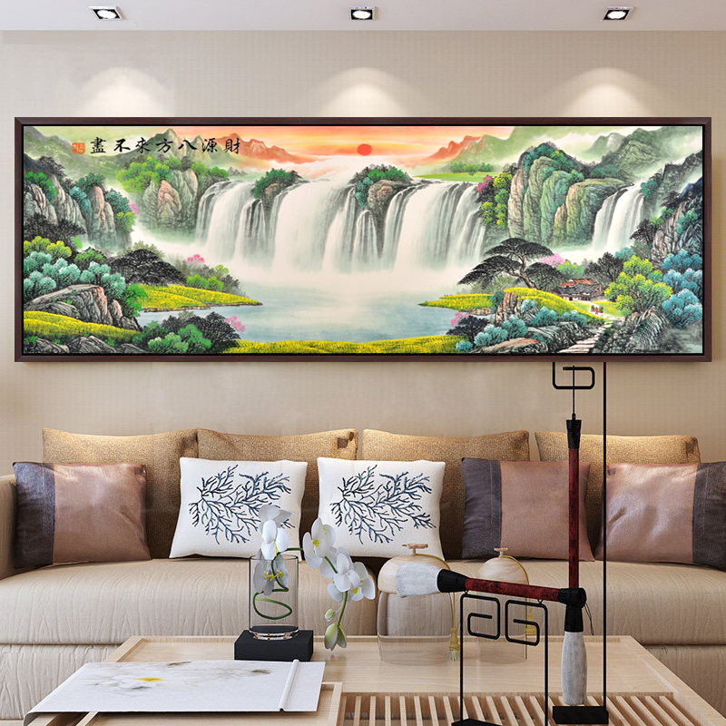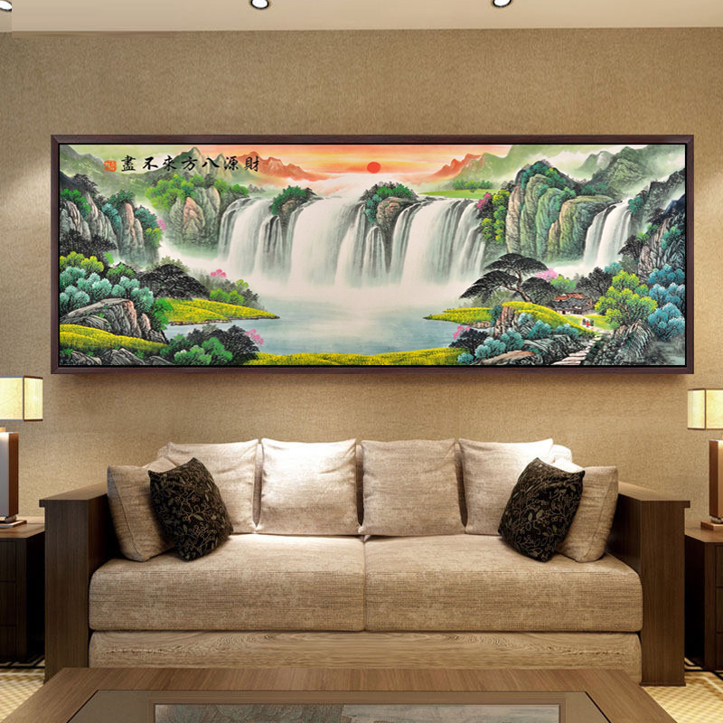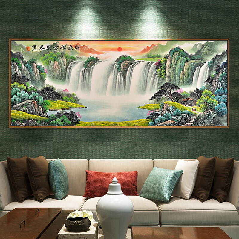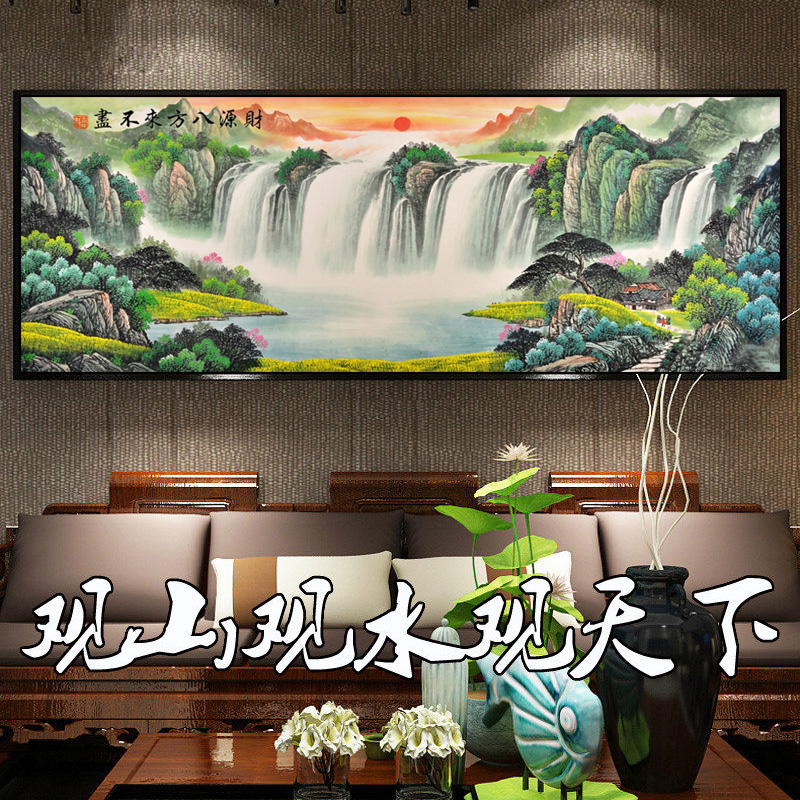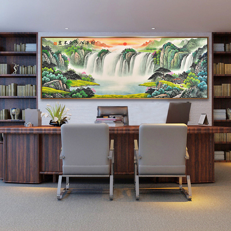 新款鉆石畫滿鉆八方聚財客廳山水風景鉆石繡財源滾滾貼鉆繡磚石畫1入