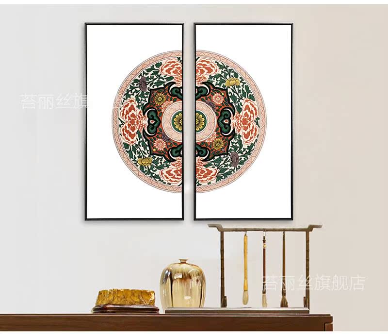 新中式古韻瓷花鉆石畫客廳玄關走廊豎版貼鉆十字繡磚石畫滿鉆圓鉆1入