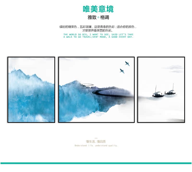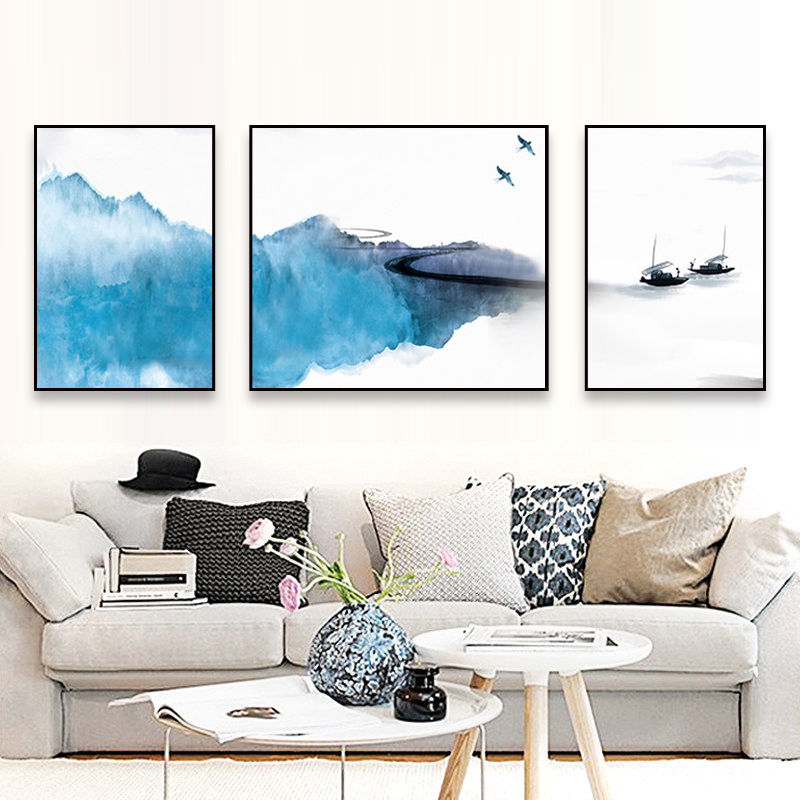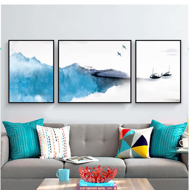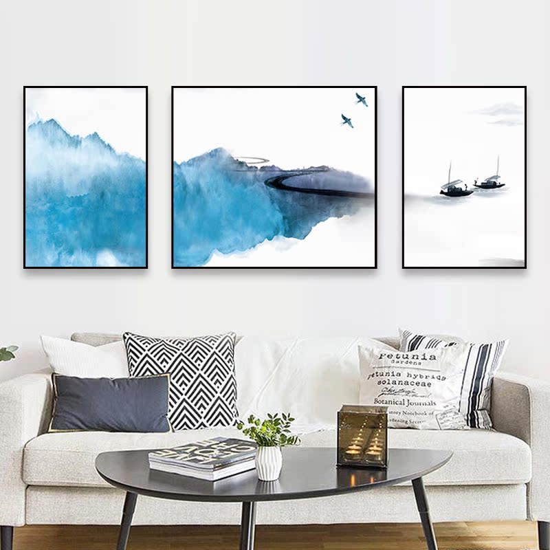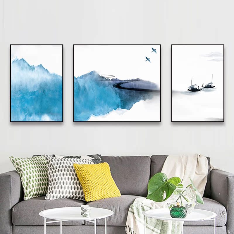 新款現代中式十字繡5d鉆石客廳三連畫貼鉆繡水墨山水畫滿鉆石繡畫1入