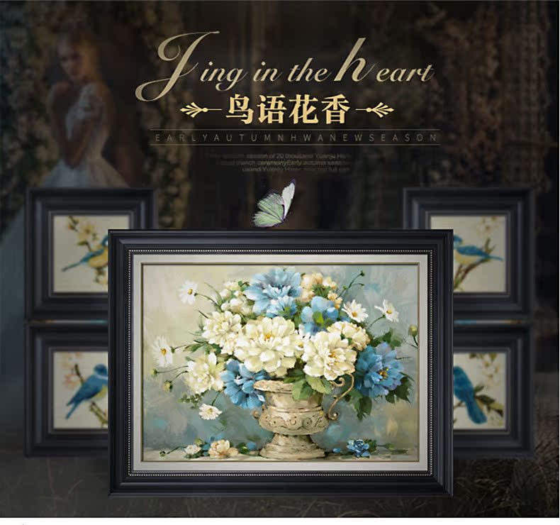新款鉆石畫花卉點鉆十字繡客廳聯畫鳥語花香鉆石繡歐式貼鉆磚石畫1入