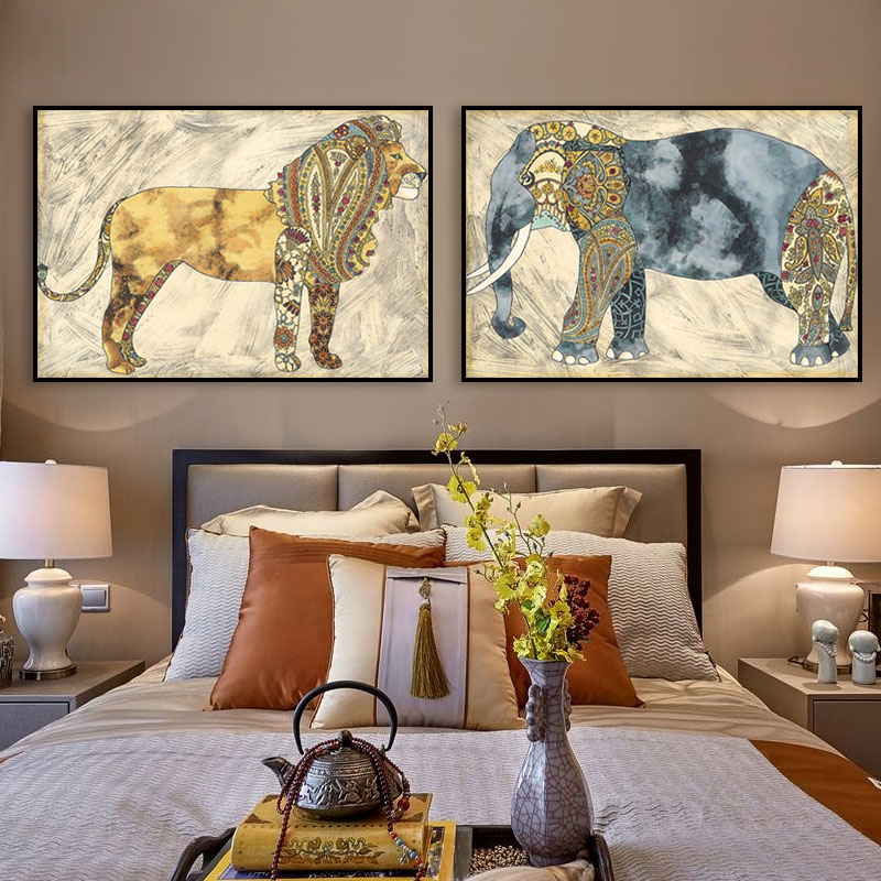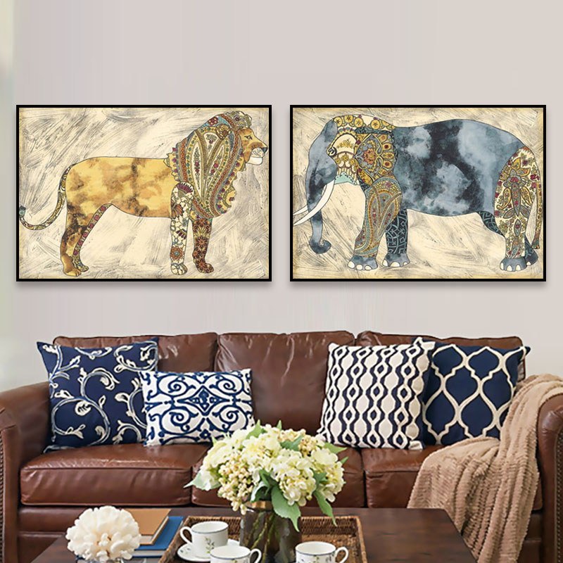 新款點磚十字繡畫鉆石畫動物客廳二聯獅子貼鉆繡大象鉆石繡單幅畫1入