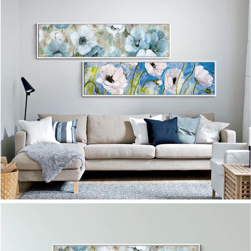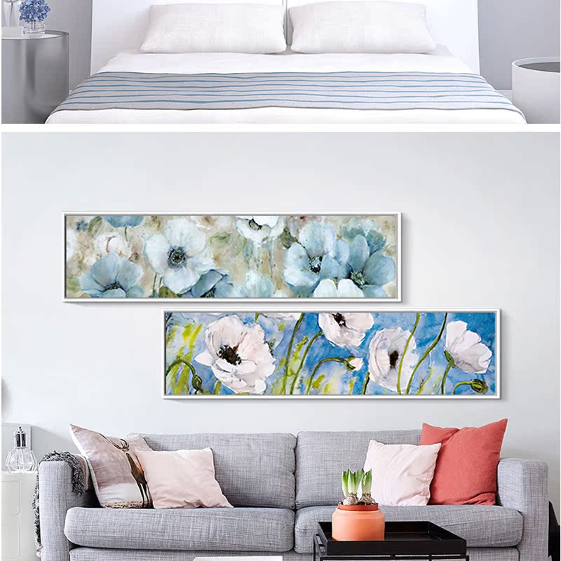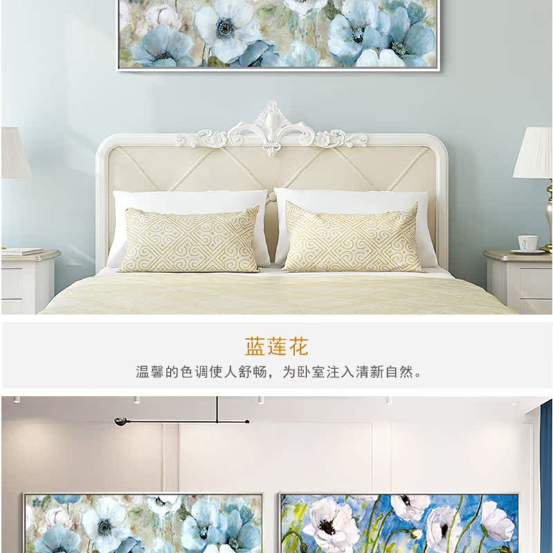 新款鉆石繡滿鉆花卉臥室鉆石畫藍蓮花客廳沙發背景貼鉆掛畫十字繡1入