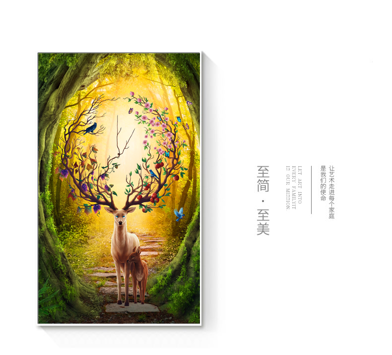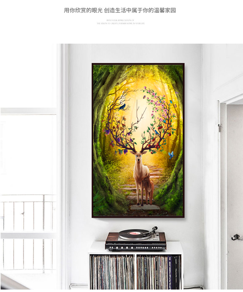 新款鉆石畫玄關豎版滿鉆客廳麋鹿鉆石繡過道裝飾貼鉆十字繡歐式畫1入