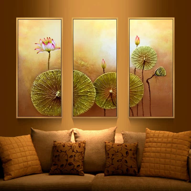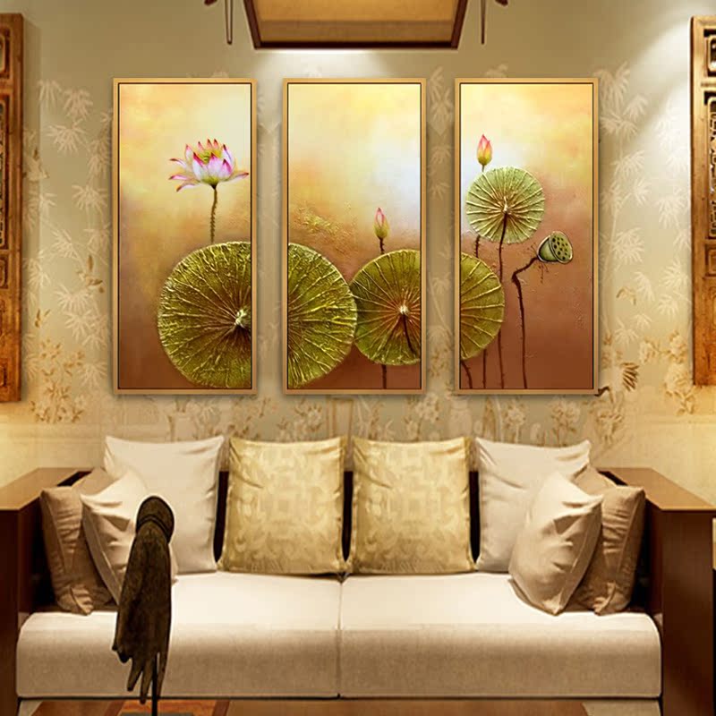 5d鉆石畫新款滿鉆中式荷花三聯禪意客廳鉆石繡十字繡貼鉆畫臥室畫1入