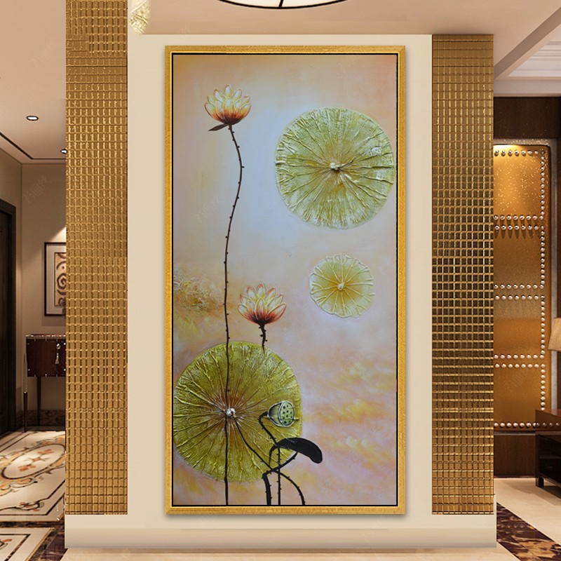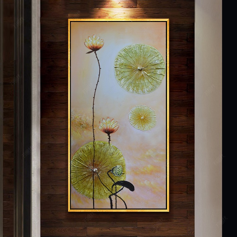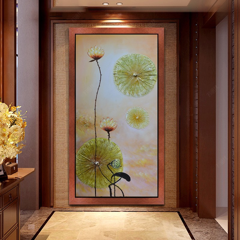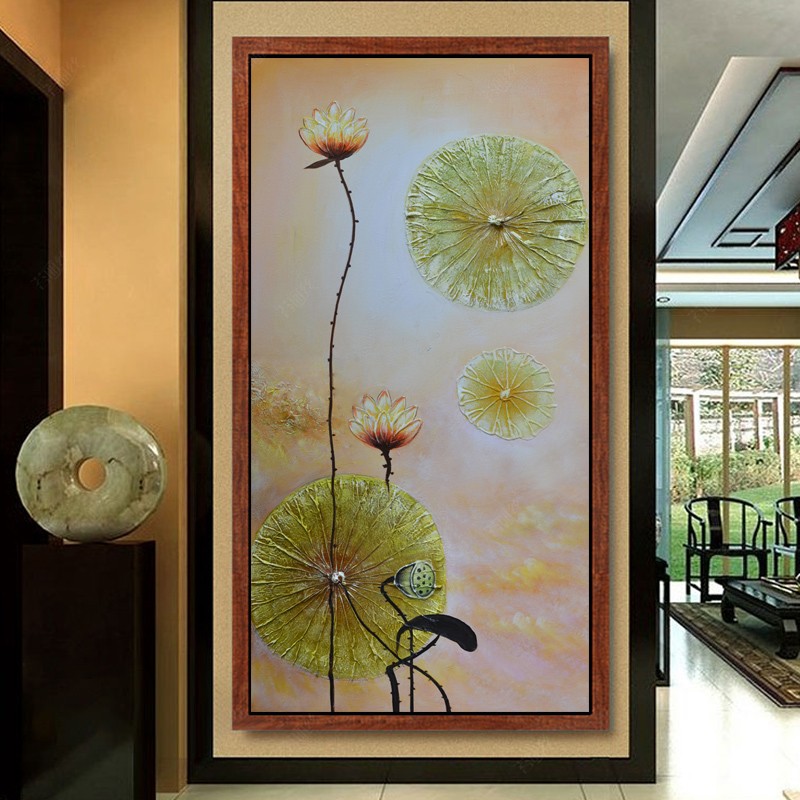 鉆石畫荷花貼鉆繡客和氣生財豎版鉆石繡滿鉆玄關東南亞風格點鉆畫1入