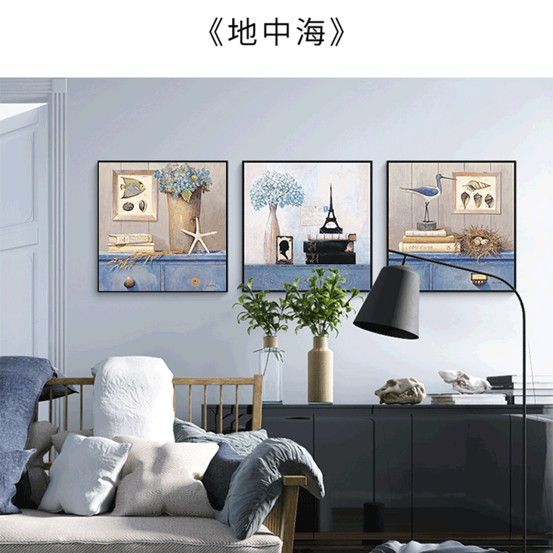 地中海創意三聯鉆石畫十字繡滿鉆客廳鉆石繡餐廳貼鉆畫臥室點鉆繡1入