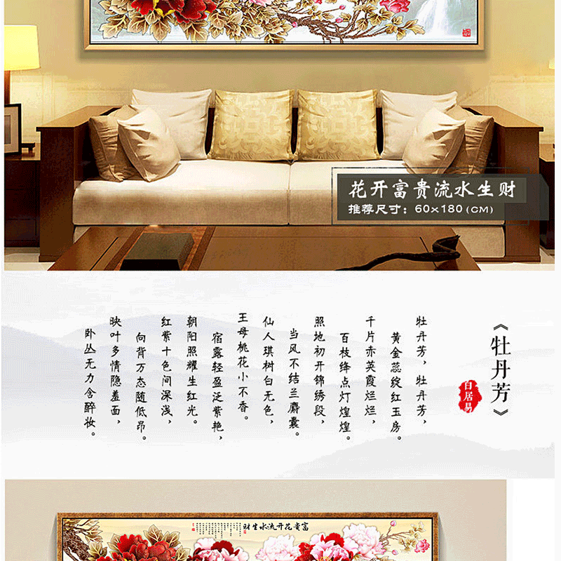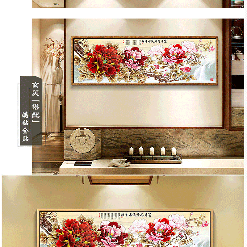 新款十字繡客廳貼鉆花開富貴鉆石畫新中式流水生財鉆石繡滿鉆風景1入