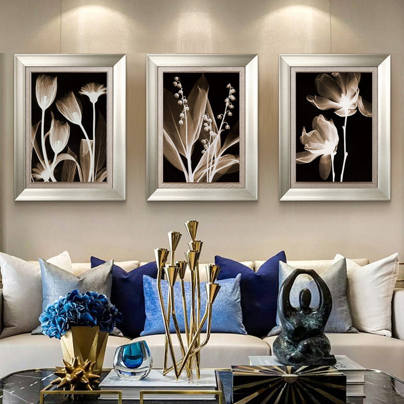 新款簡約客廳郁金香三聯畫十字繡5d鉆石畫滿鉆花卉貼鉆繡磚石畫1入