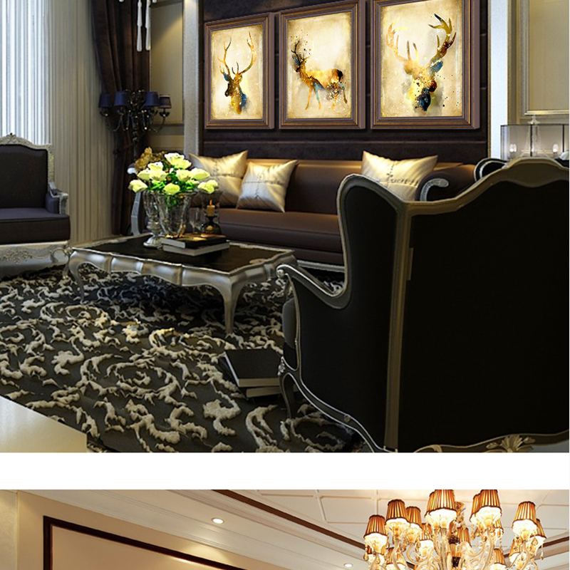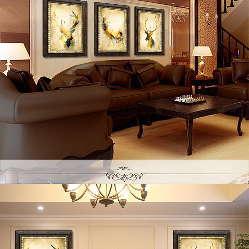 新款鉆石繡滿鉆5D鉆石畫圓鉆客廳三聯發財黃金鹿點鉆十字繡磚石畫1入