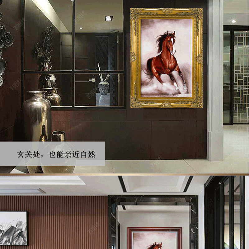 新款5D圓鉆馬到成功鉆石十字繡鉆石畫書房玄關貼鉆繡臥室客廳鉆畫1入