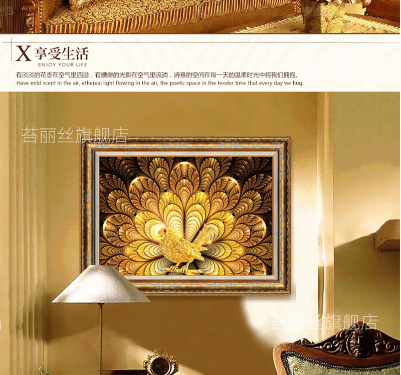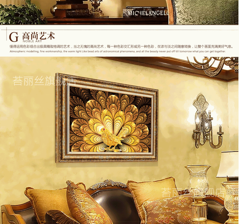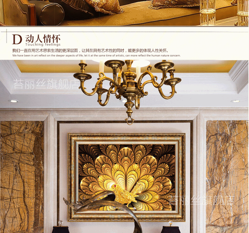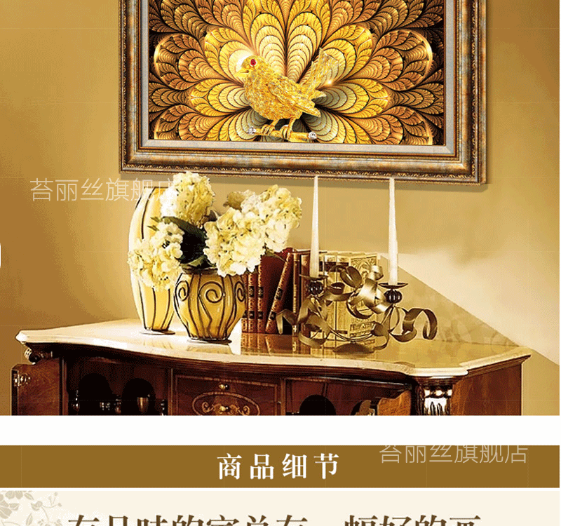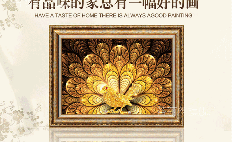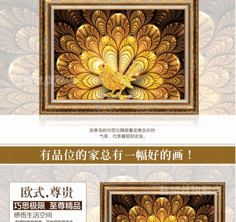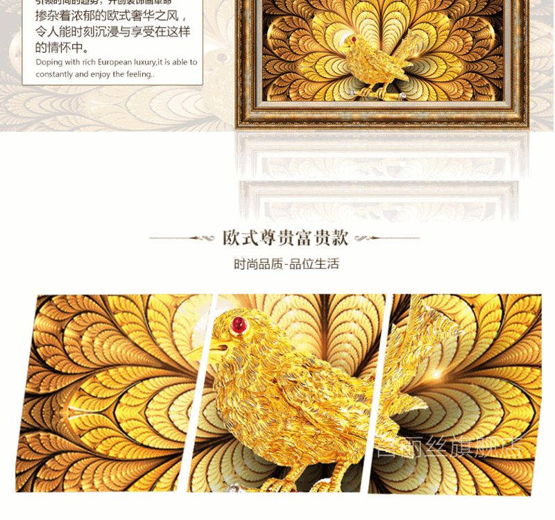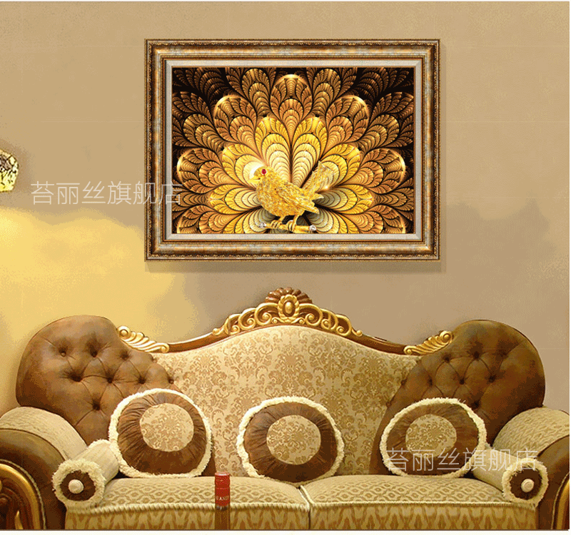 新款歐式富貴鳥鉆石畫滿鉆金孔雀鉆石十字繡5D魔方圓鉆客廳臥室畫1入