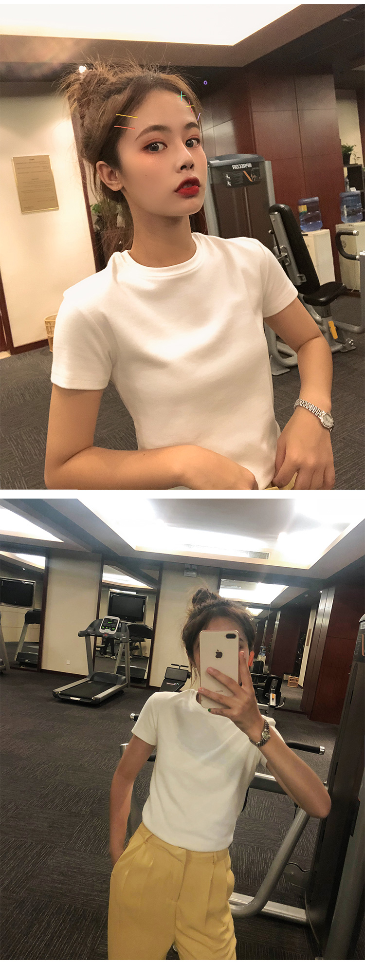 虎牙犬牙 白色短袖上衣女2019夏季新款韓版修身顯瘦學生百搭T恤潮1入