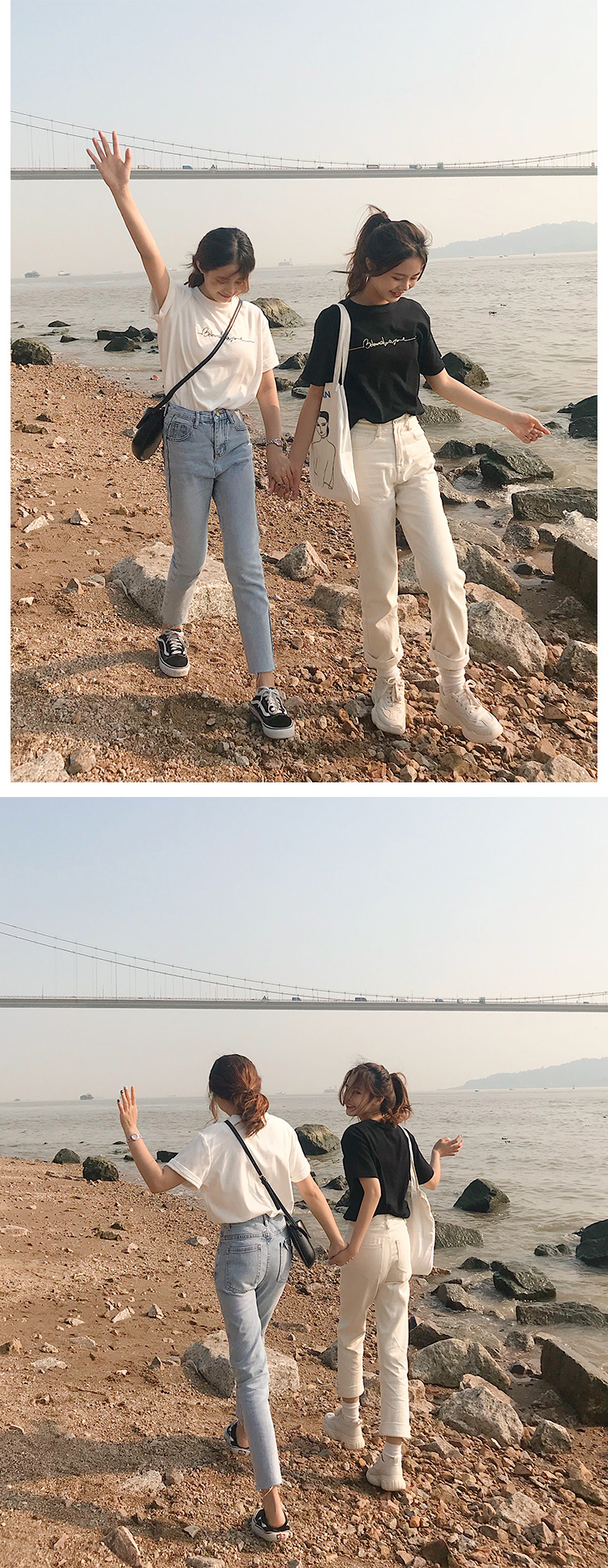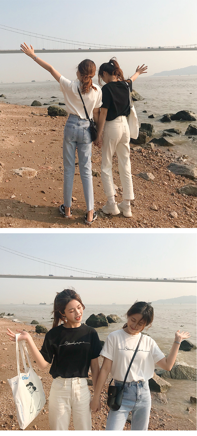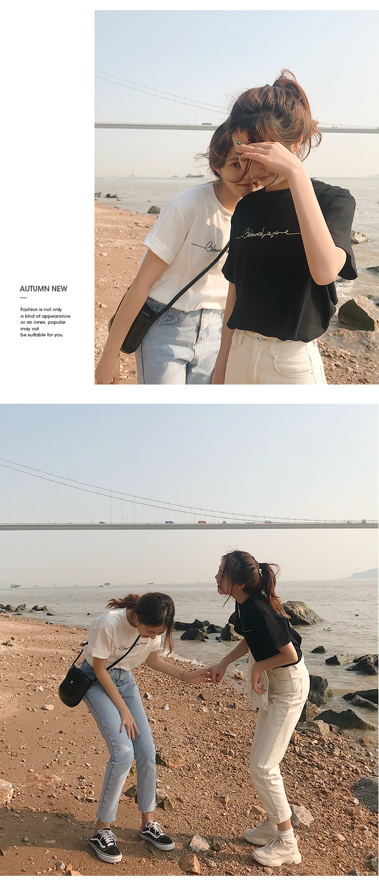 虎牙犬牙 2019夏裝新款韓版寬松顯瘦百搭字母印花黑白色短袖t恤女1入