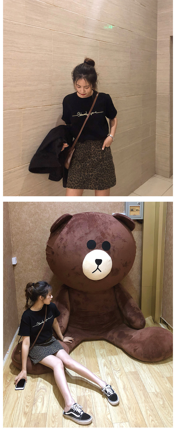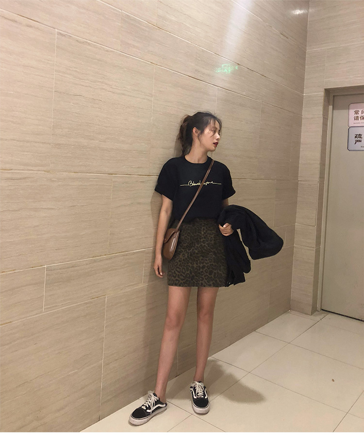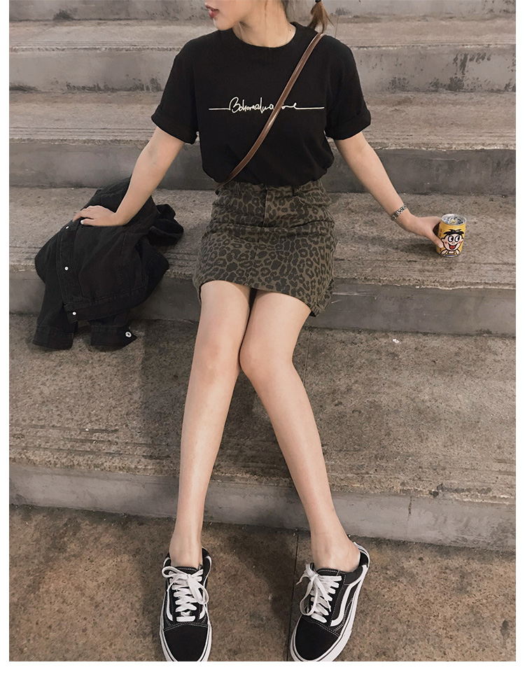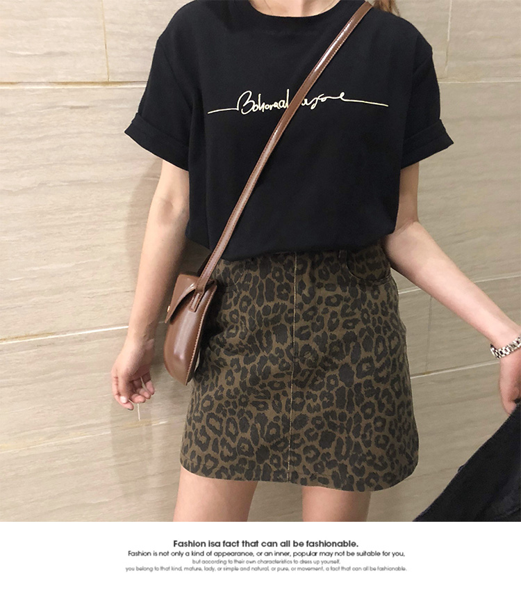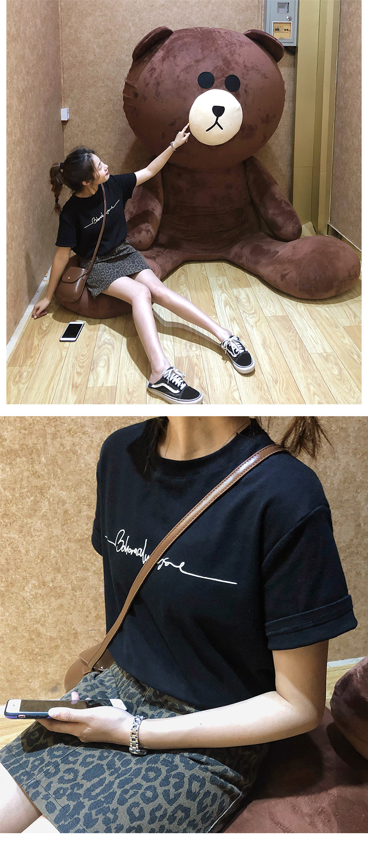 虎牙犬牙 2019夏裝新款韓范圓領簡約黑色百搭字母印花短袖t恤女潮1入