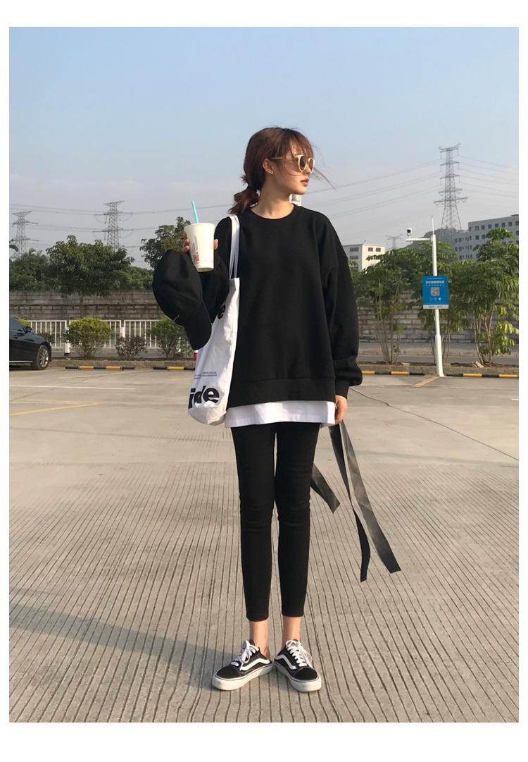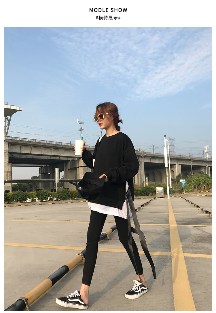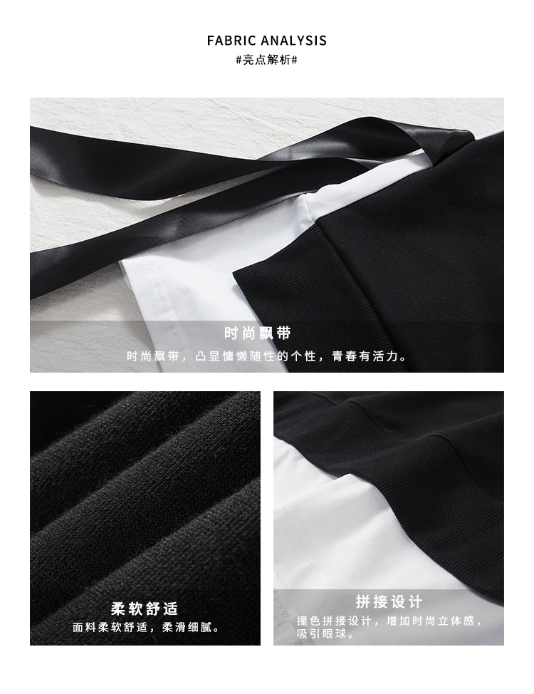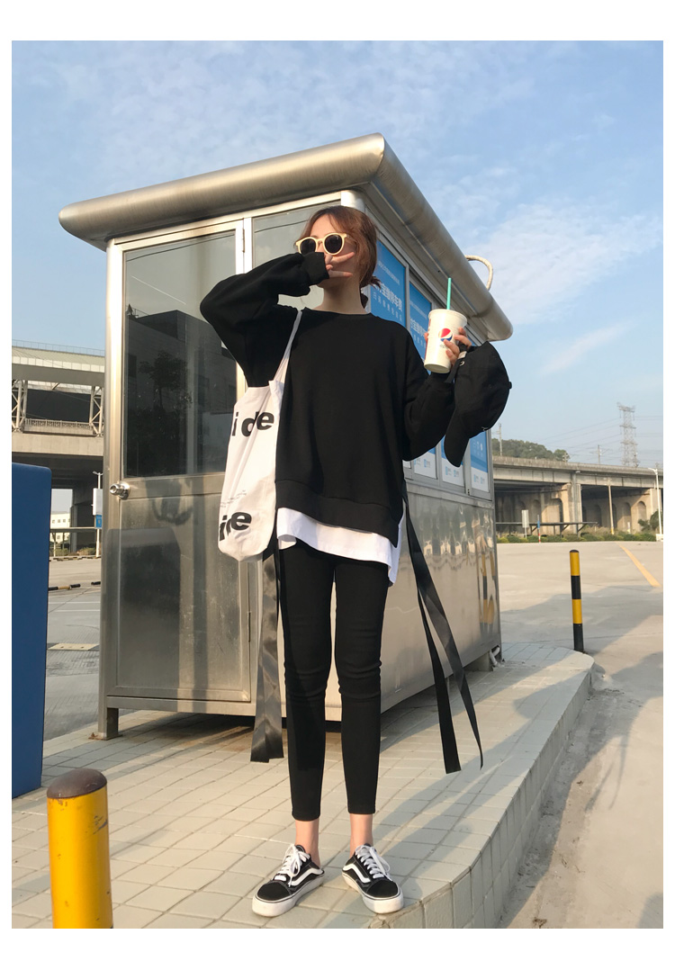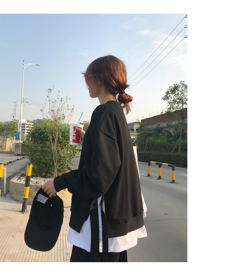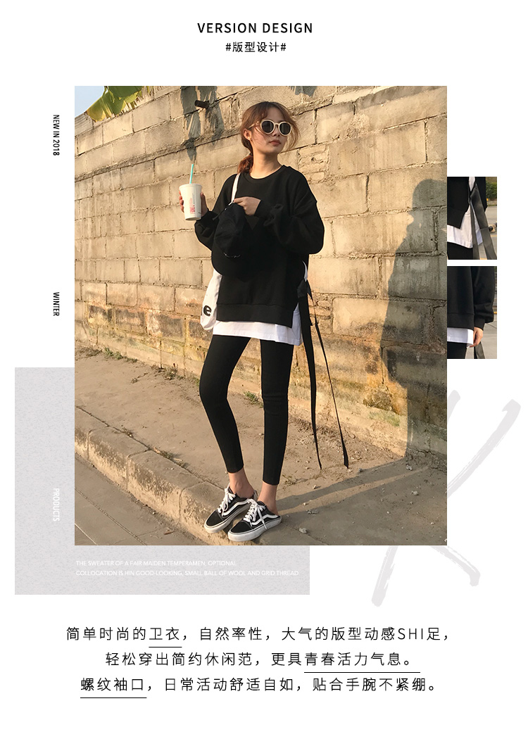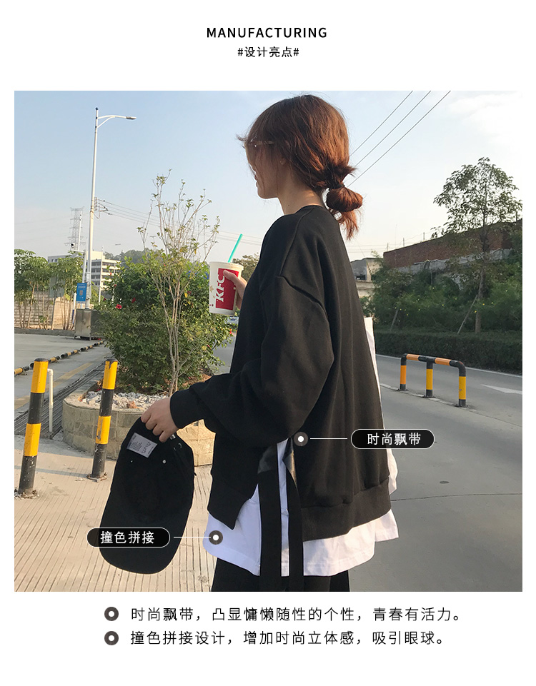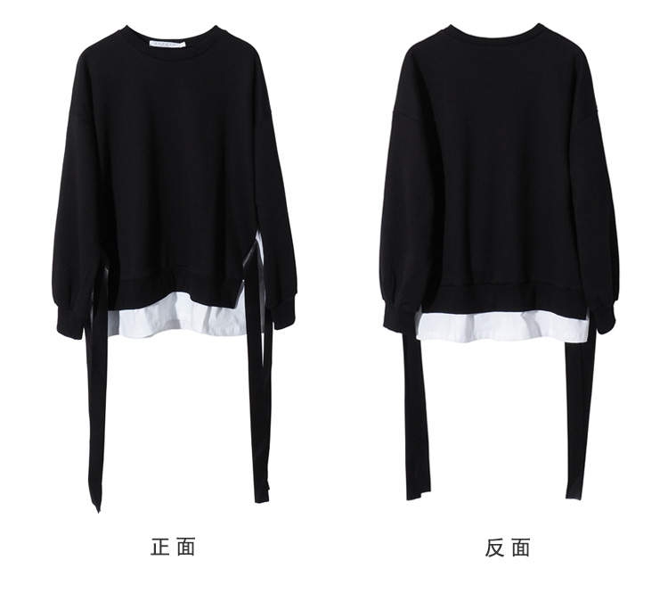 虎牙犬牙豬年衛衣秋冬新款韓版寬松潮流學生黑色絲帶假兩件衛衣女1入