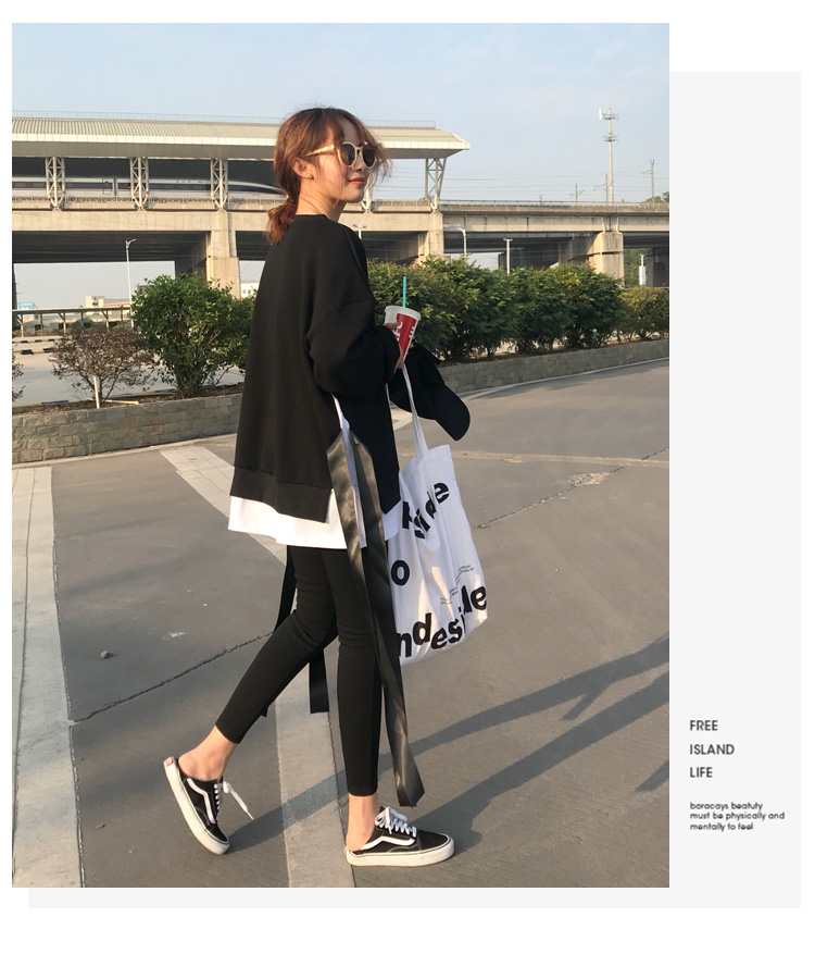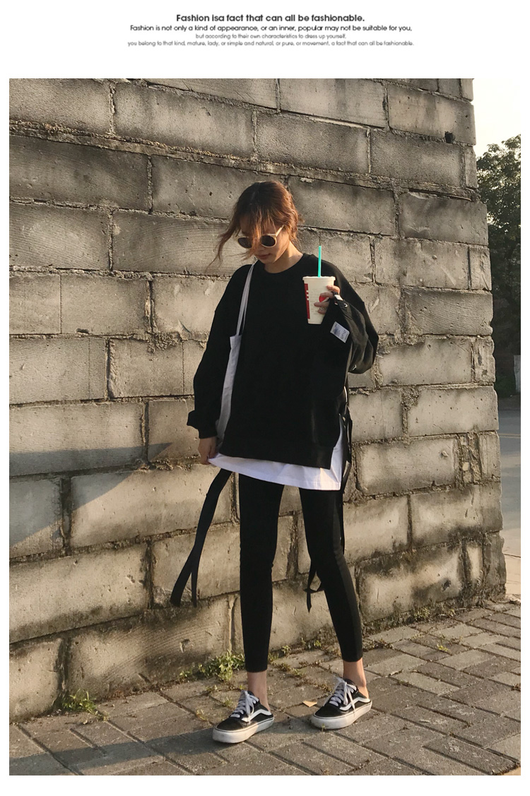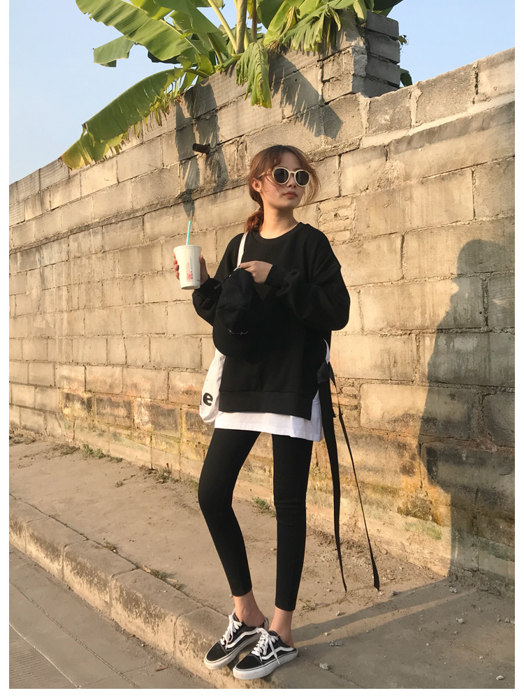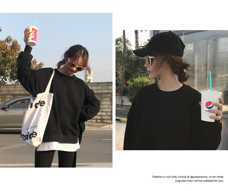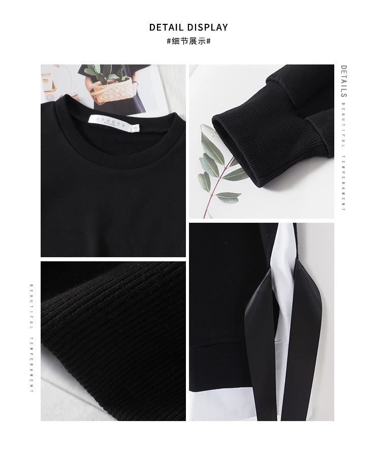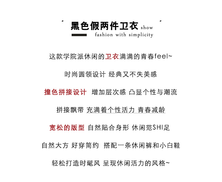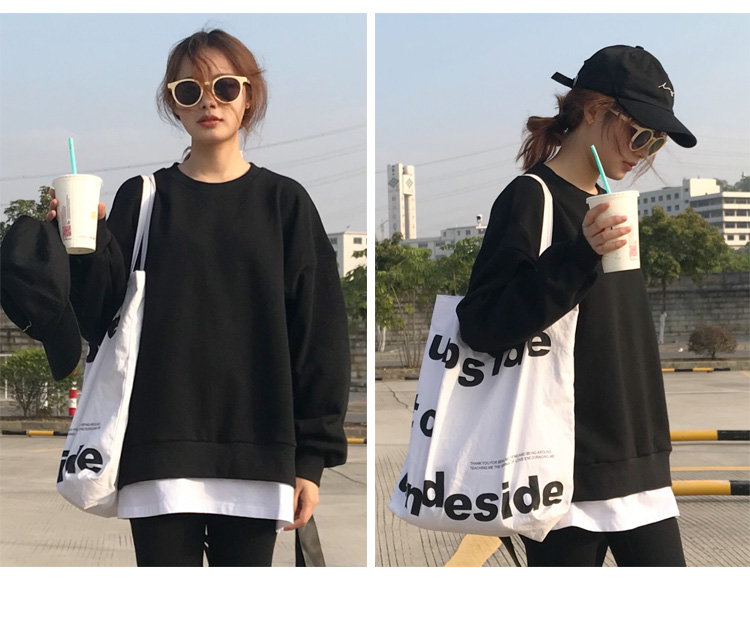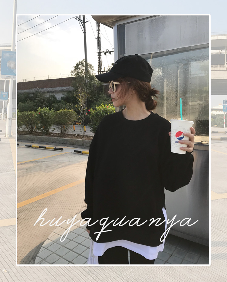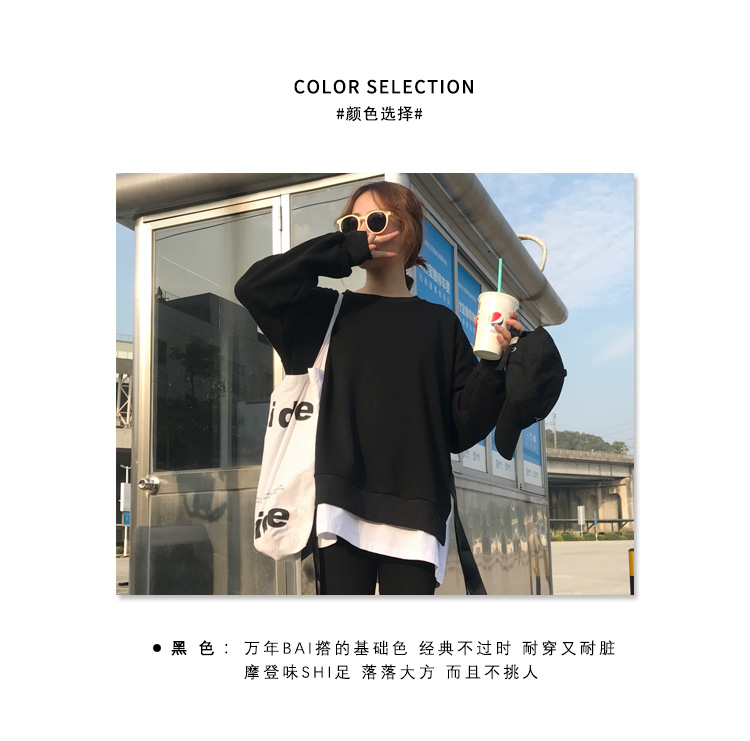 虎牙犬牙豬年衛衣秋冬新款韓版寬松潮流學生黑色絲帶假兩件衛衣女1入