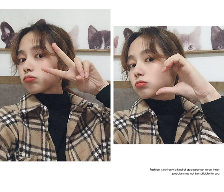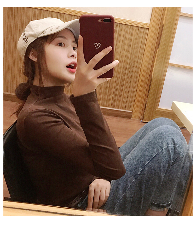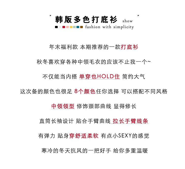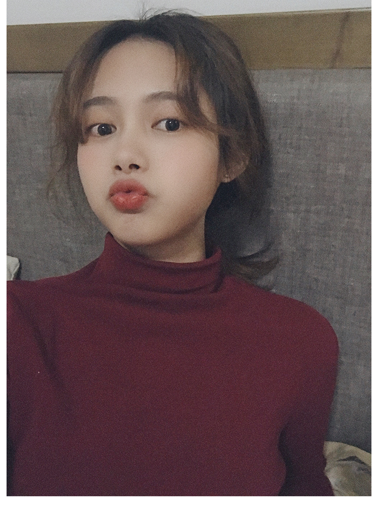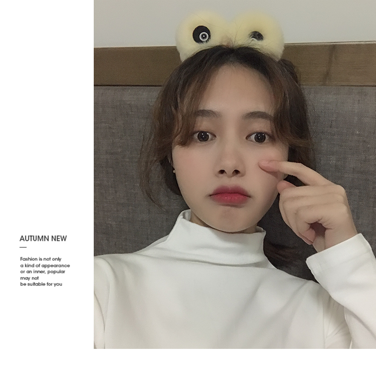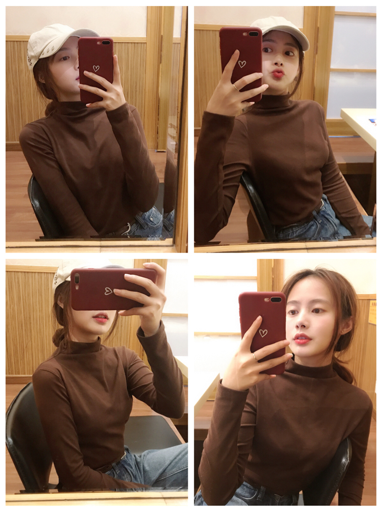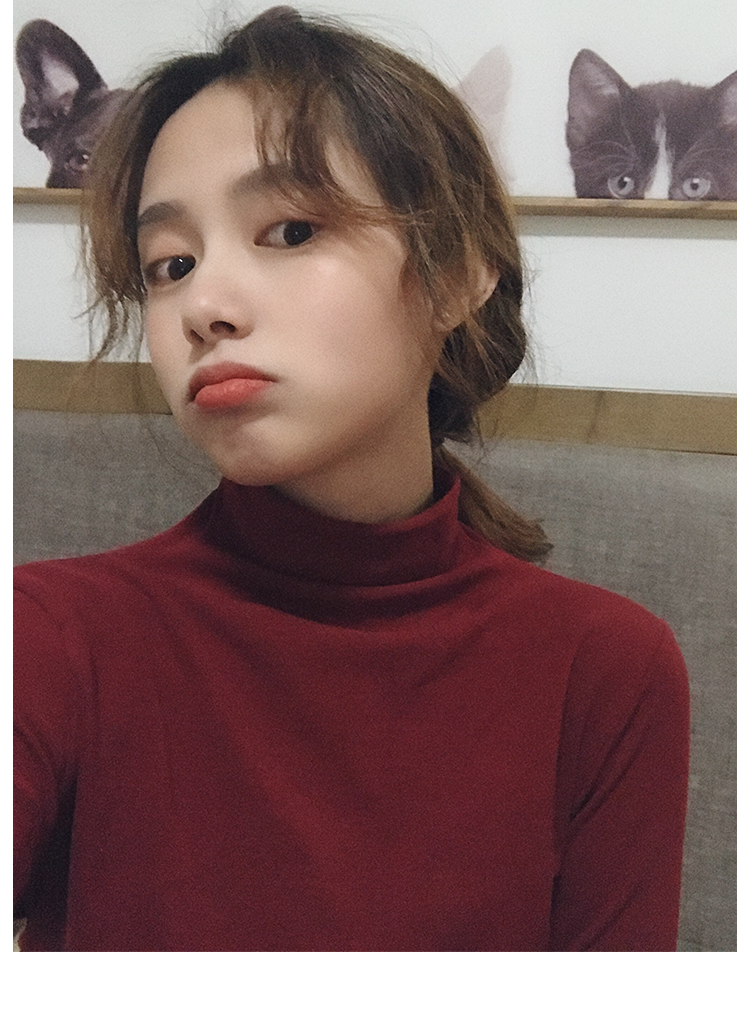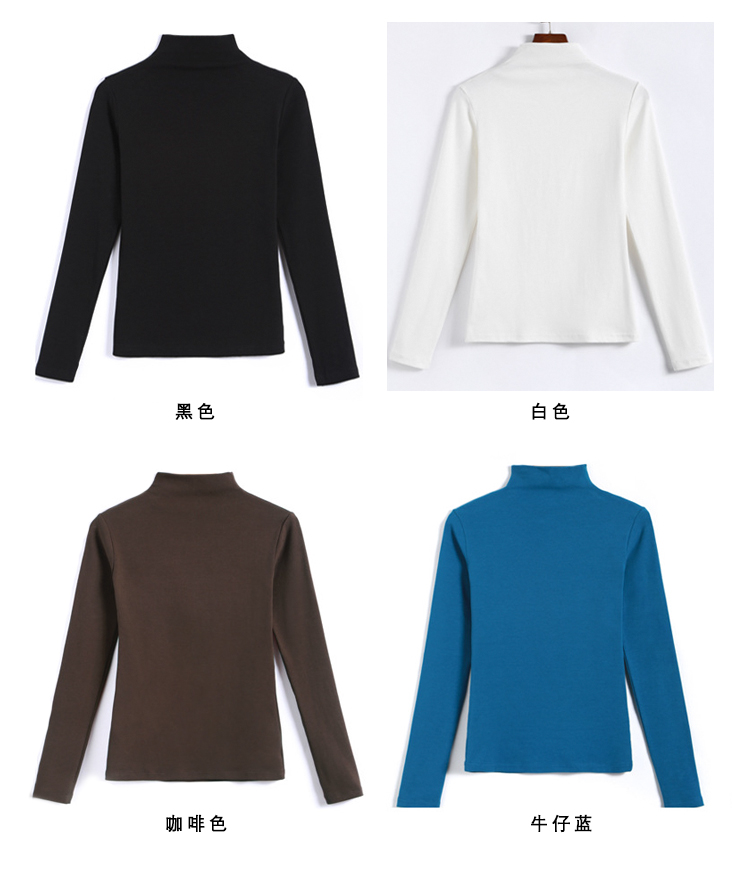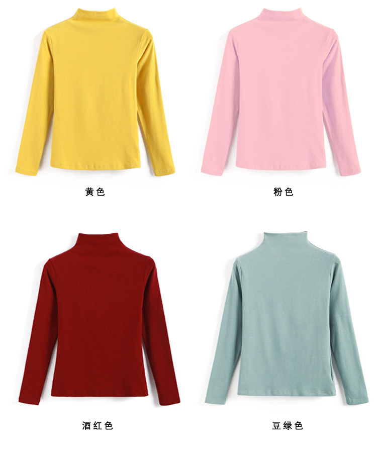 虎牙犬牙 中高領打底衫女2019新款春秋內搭t恤百搭高領修身顯瘦1入